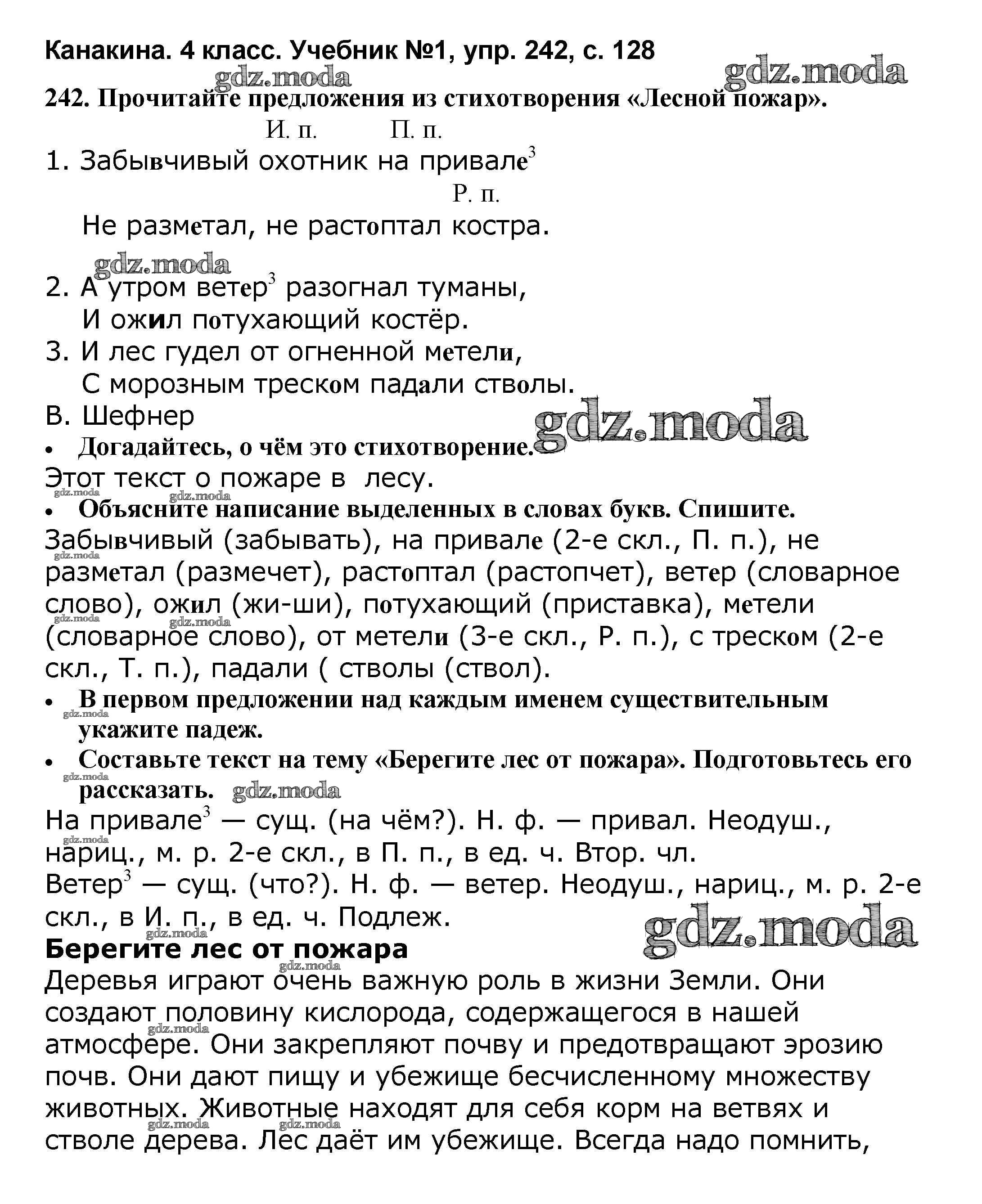 ОТВЕТ на задание № 242 Учебник по Русскому языку 4 класс Канакина Школа России