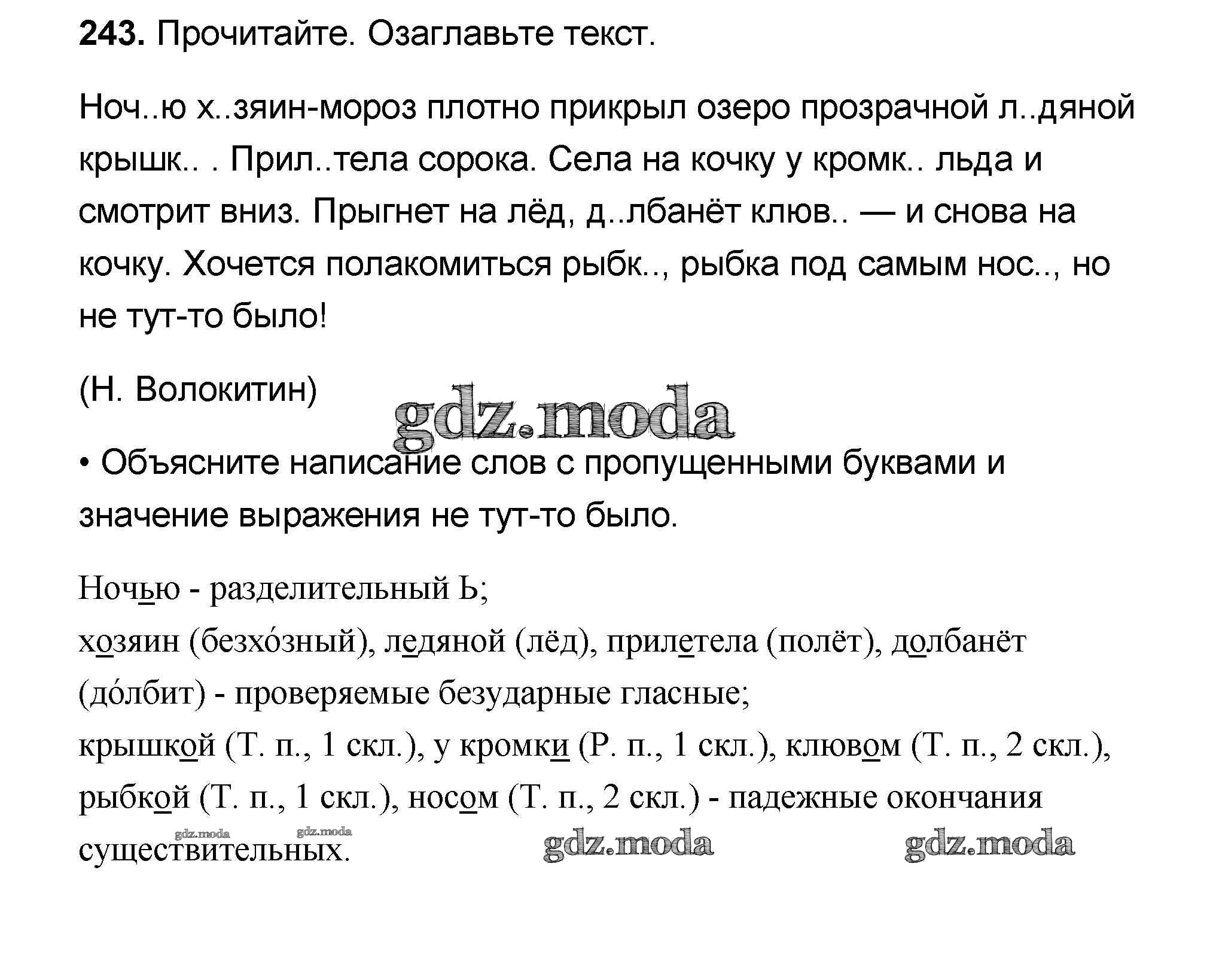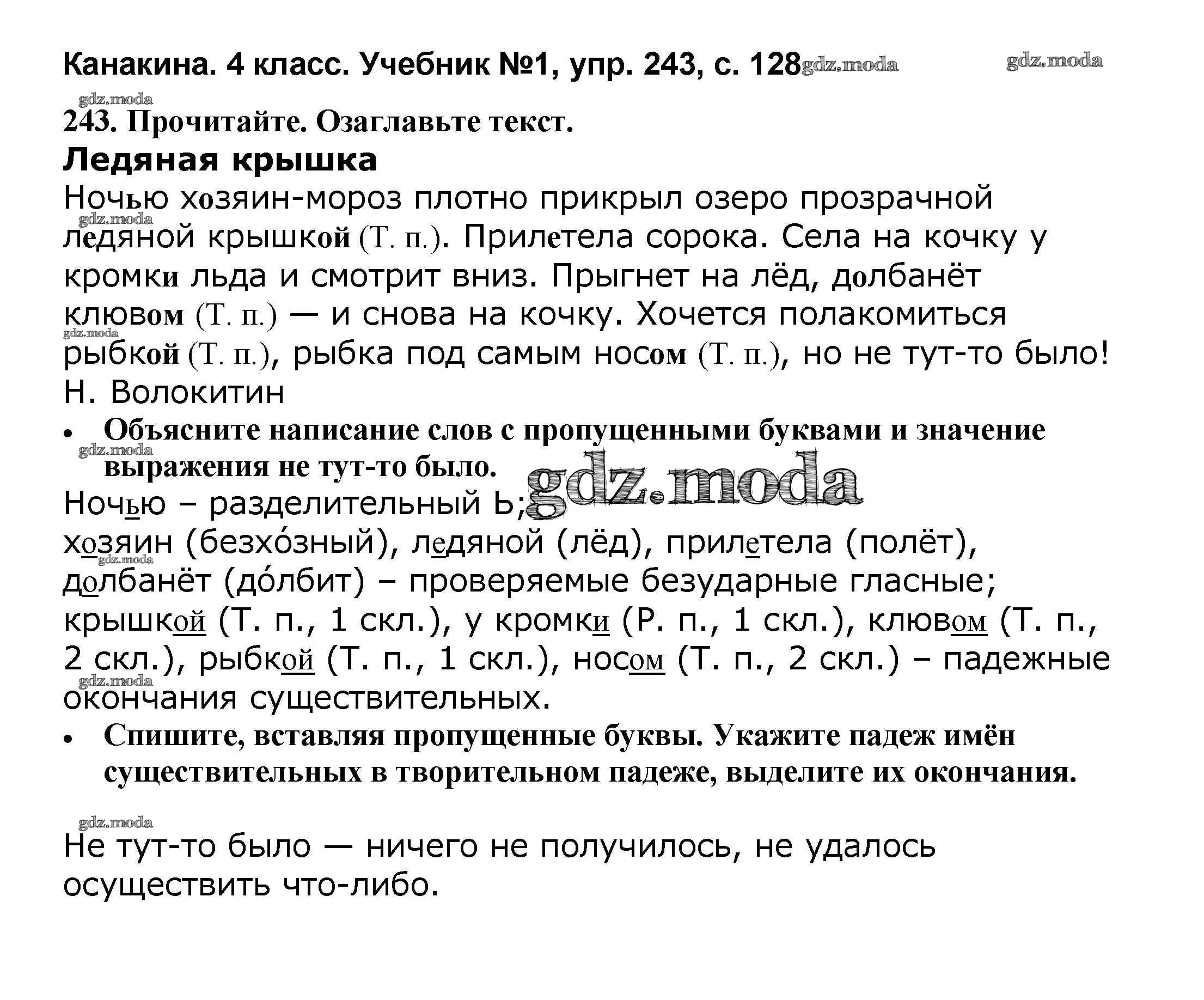 ОТВЕТ на задание № 243 Учебник по Русскому языку 4 класс Канакина Школа России
