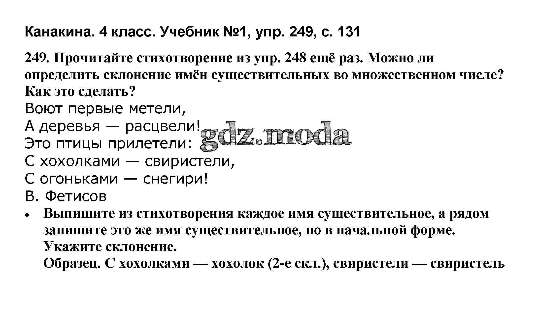 ОТВЕТ на задание № 249 Учебник по Русскому языку 4 класс Канакина Школа России