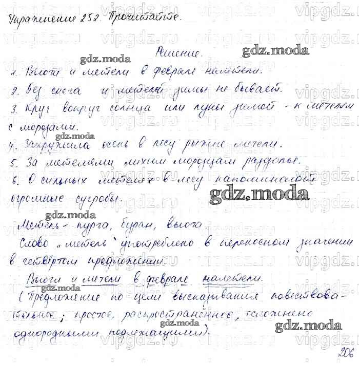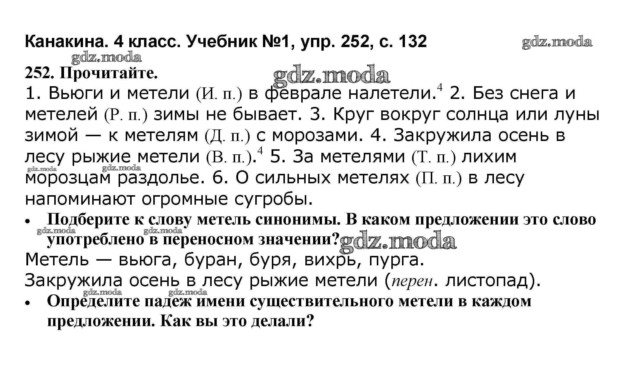 ОТВЕТ на задание № 252 Учебник по Русскому языку 4 класс Канакина Школа России