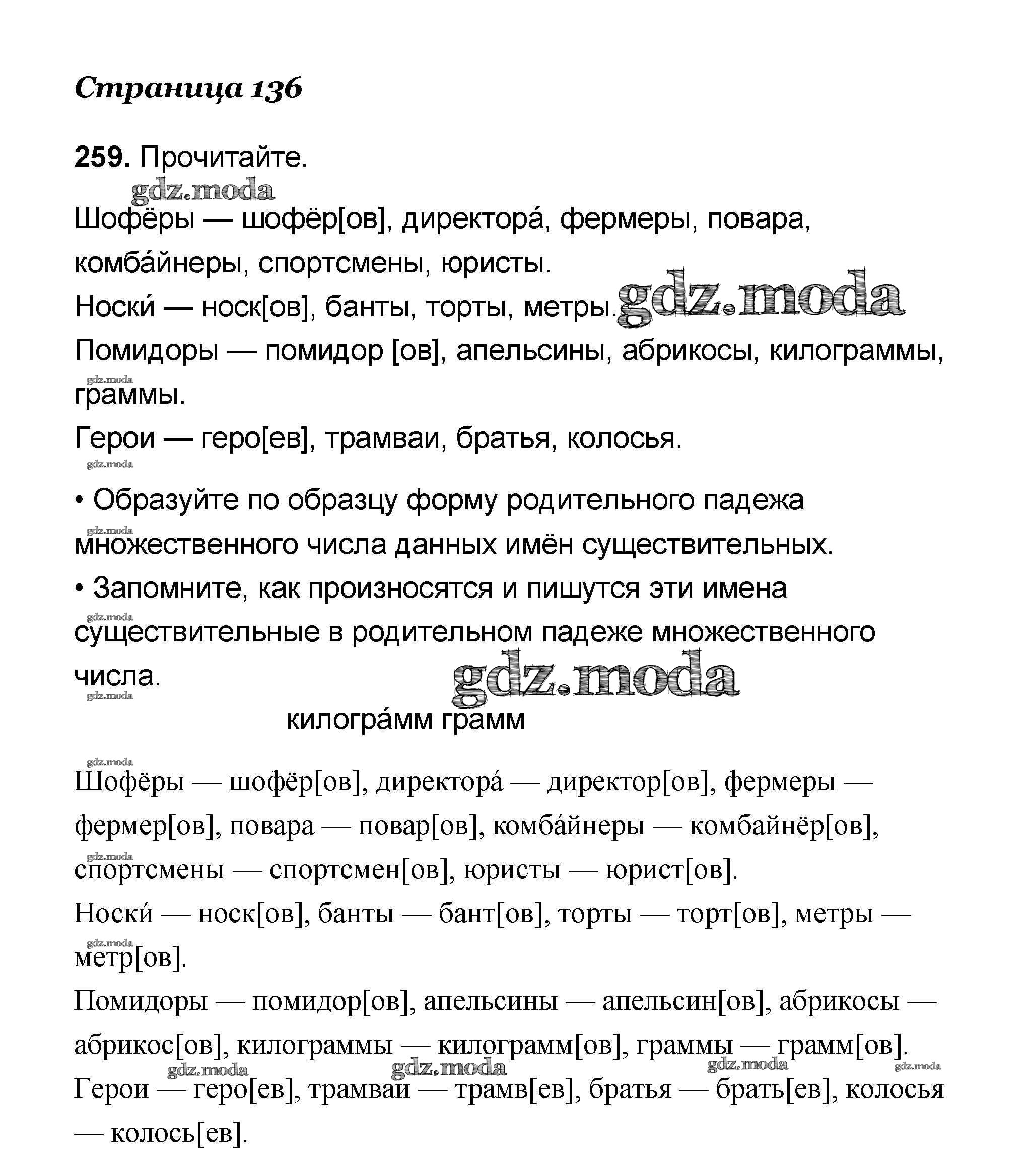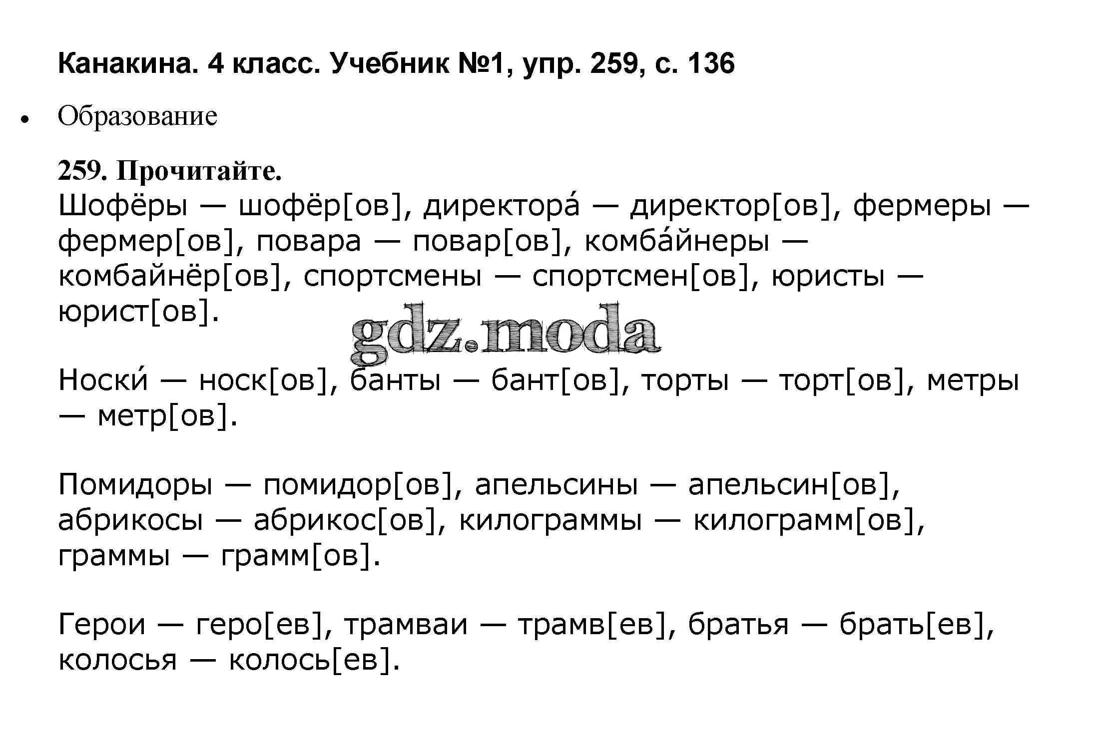 ОТВЕТ на задание № 259 Учебник по Русскому языку 4 класс Канакина Школа России