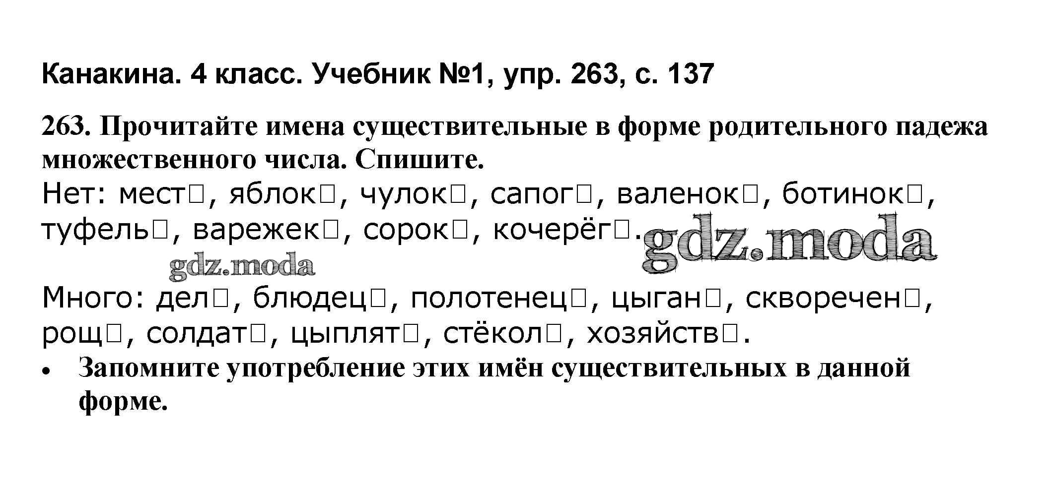 ОТВЕТ на задание № 263 Учебник по Русскому языку 4 класс Канакина Школа России