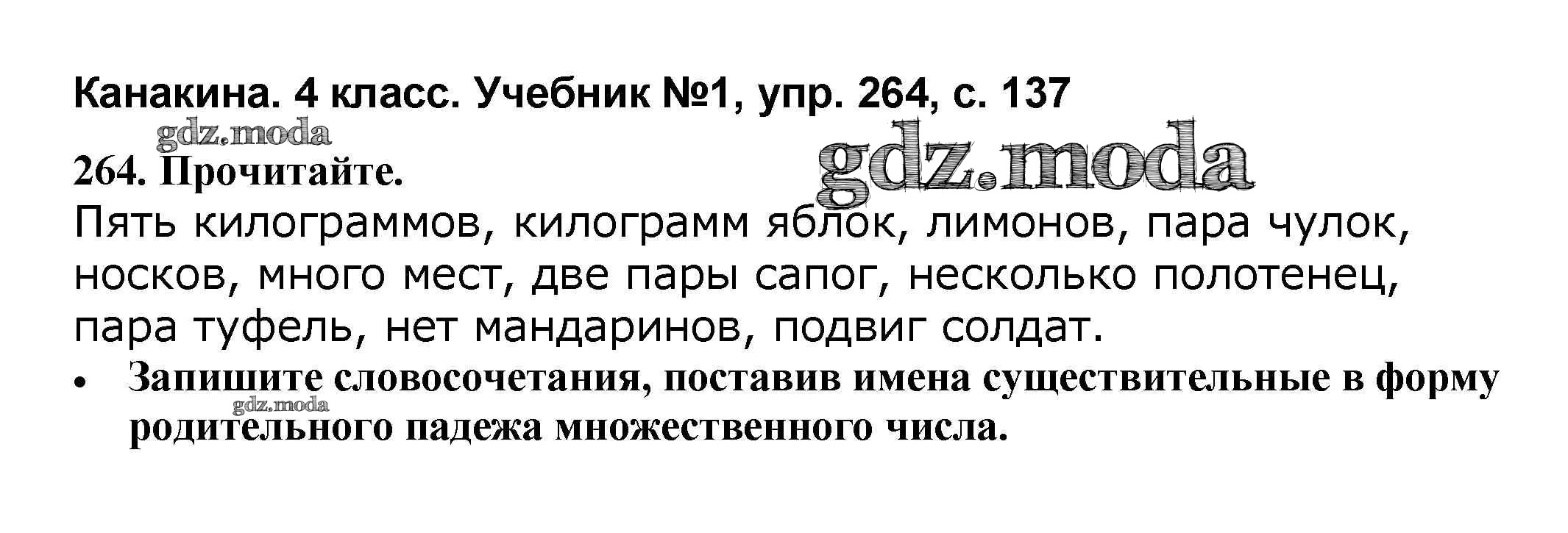 ОТВЕТ на задание № 264 Учебник по Русскому языку 4 класс Канакина Школа России