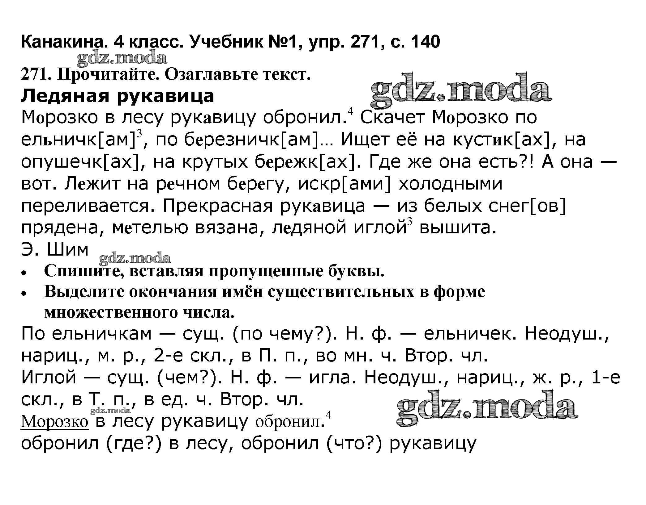 ОТВЕТ на задание № 271 Учебник по Русскому языку 4 класс Канакина Школа России