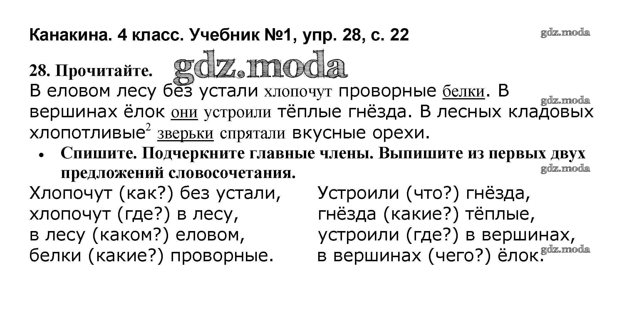 ОТВЕТ на задание № 28 Учебник по Русскому языку 4 класс Канакина Школа России