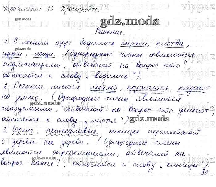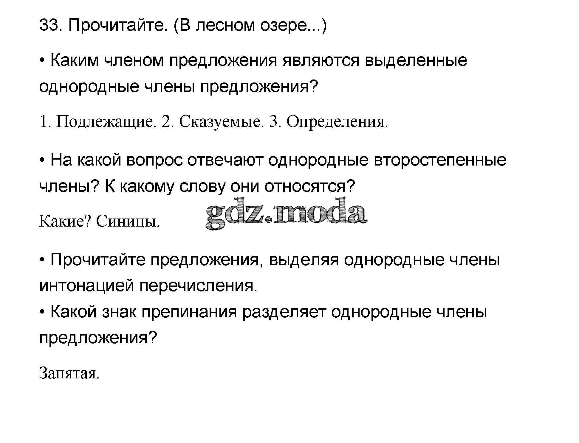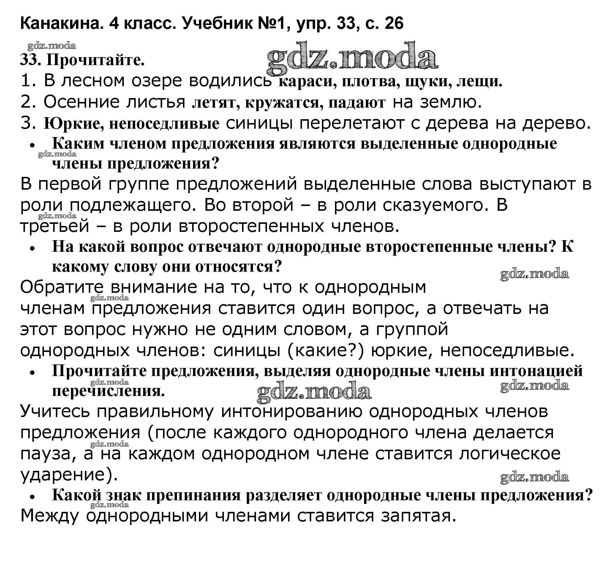 ОТВЕТ на задание № 33 Учебник по Русскому языку 4 класс Канакина Школа России