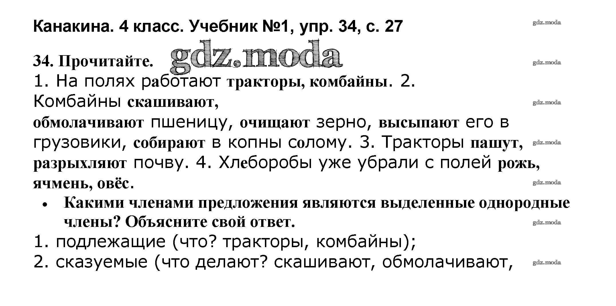 ОТВЕТ на задание № 34 Учебник по Русскому языку 4 класс Канакина Школа России