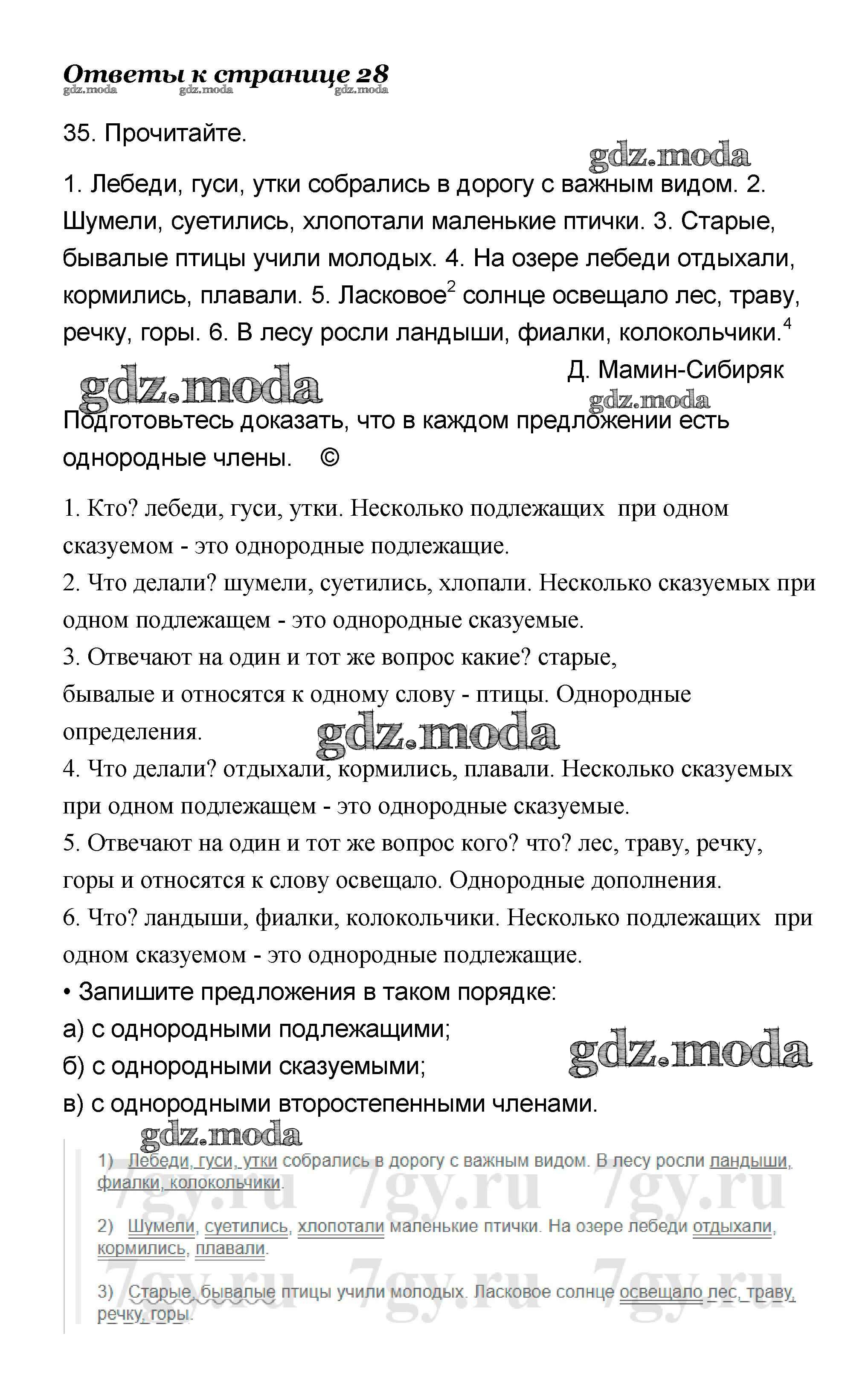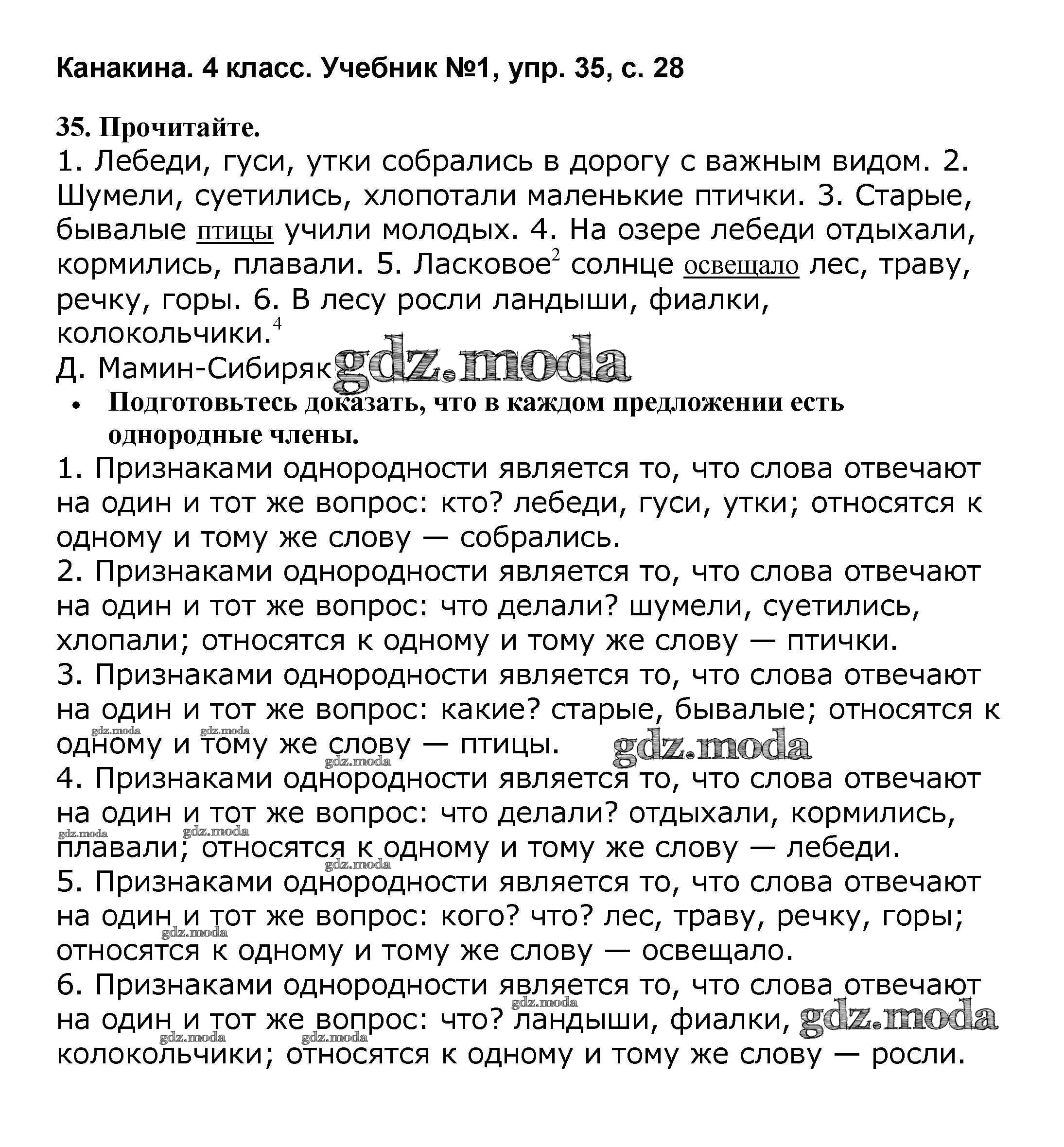 ОТВЕТ на задание № 35 Учебник по Русскому языку 4 класс Канакина Школа России