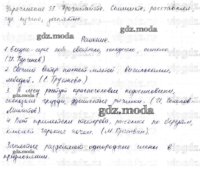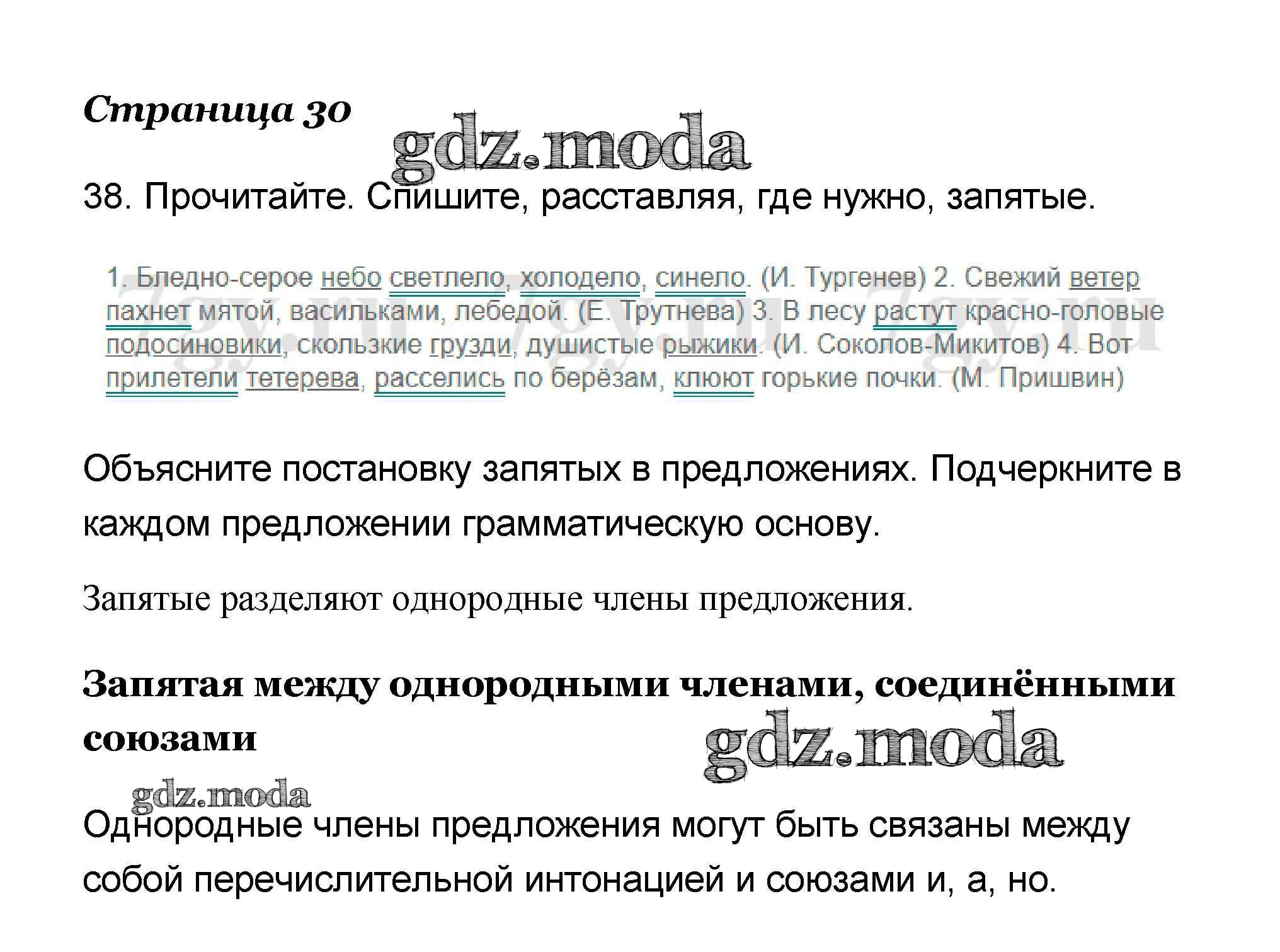 ОТВЕТ на задание № 38 Учебник по Русскому языку 4 класс Канакина Школа России