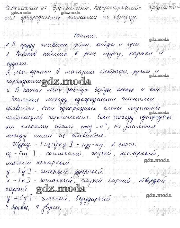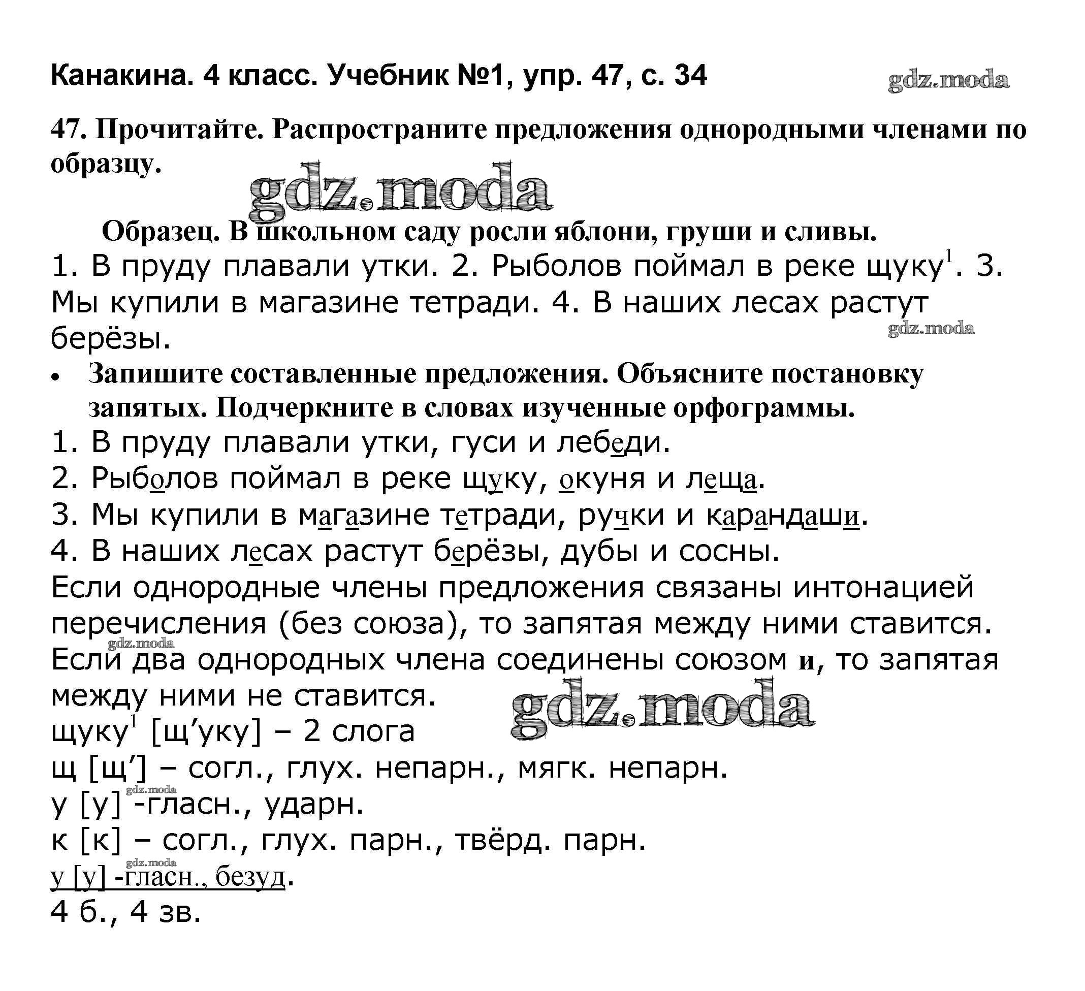 ОТВЕТ на задание № 47 Учебник по Русскому языку 4 класс Канакина Школа России