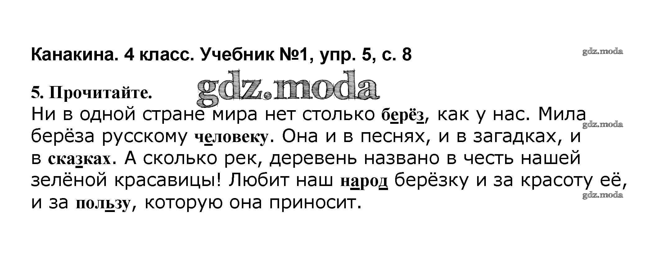 ОТВЕТ на задание № 5 Учебник по Русскому языку 4 класс Канакина Школа России