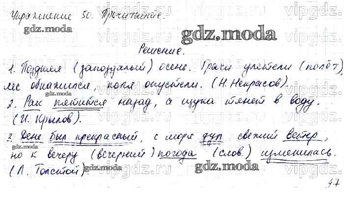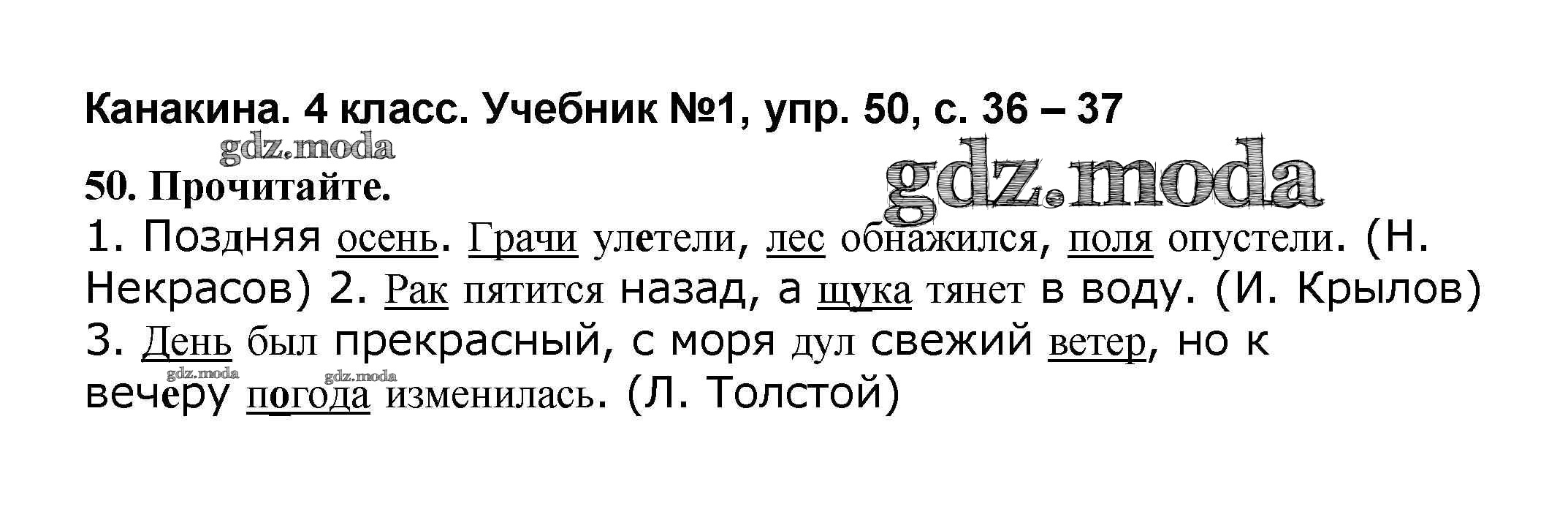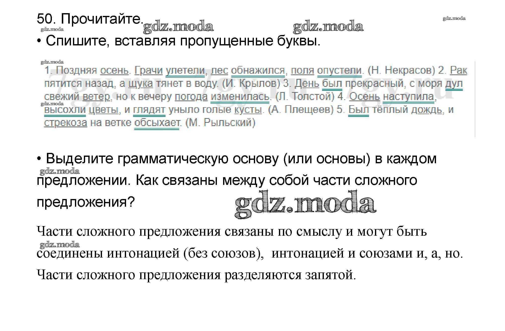 ОТВЕТ на задание № 50 Учебник по Русскому языку 4 класс Канакина Школа России