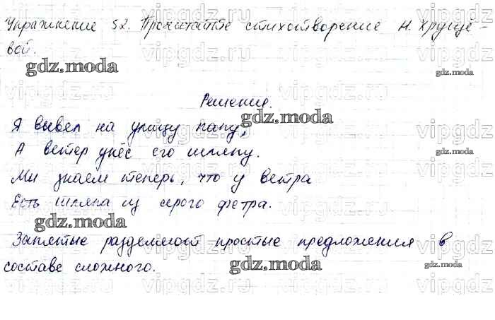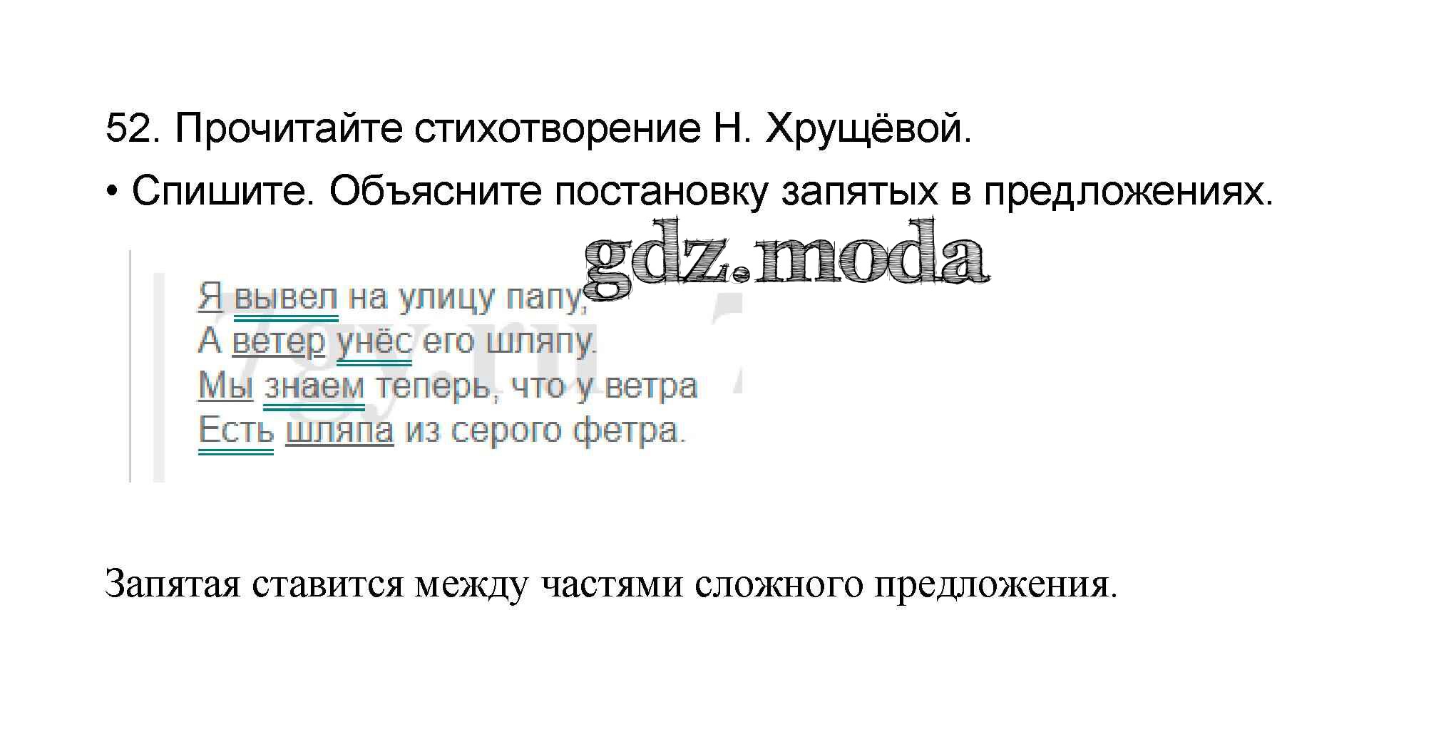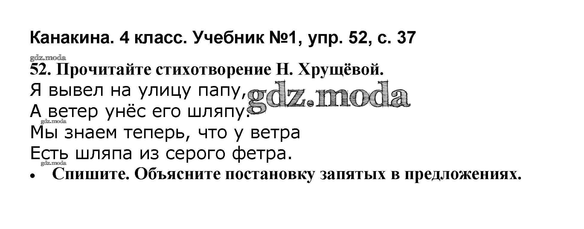 ОТВЕТ на задание № 52 Учебник по Русскому языку 4 класс Канакина Школа России