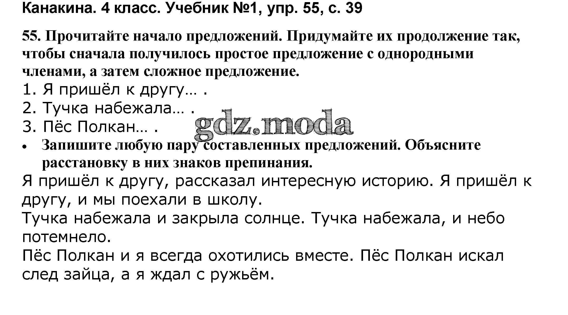 ОТВЕТ на задание № 55 Учебник по Русскому языку 4 класс Канакина Школа России