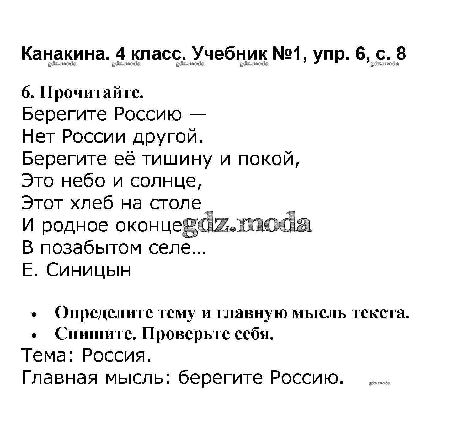ОТВЕТ на задание № 6 Учебник по Русскому языку 4 класс Канакина Школа России