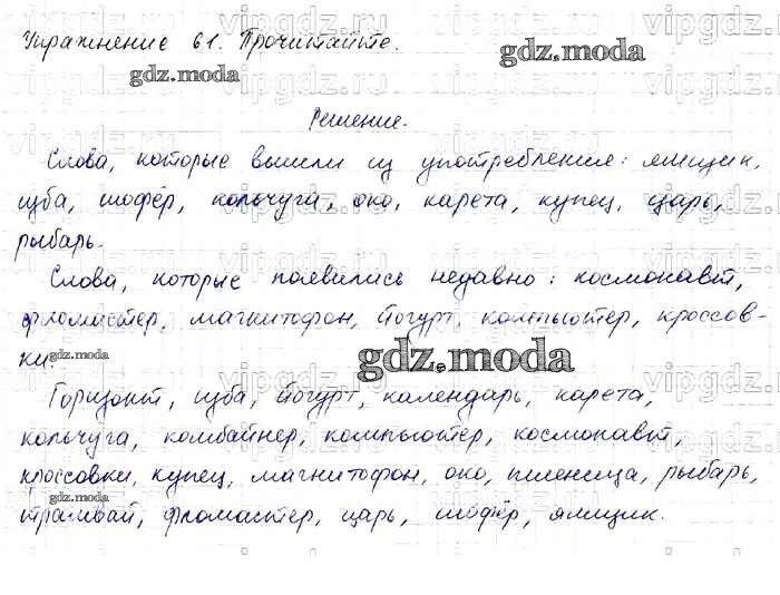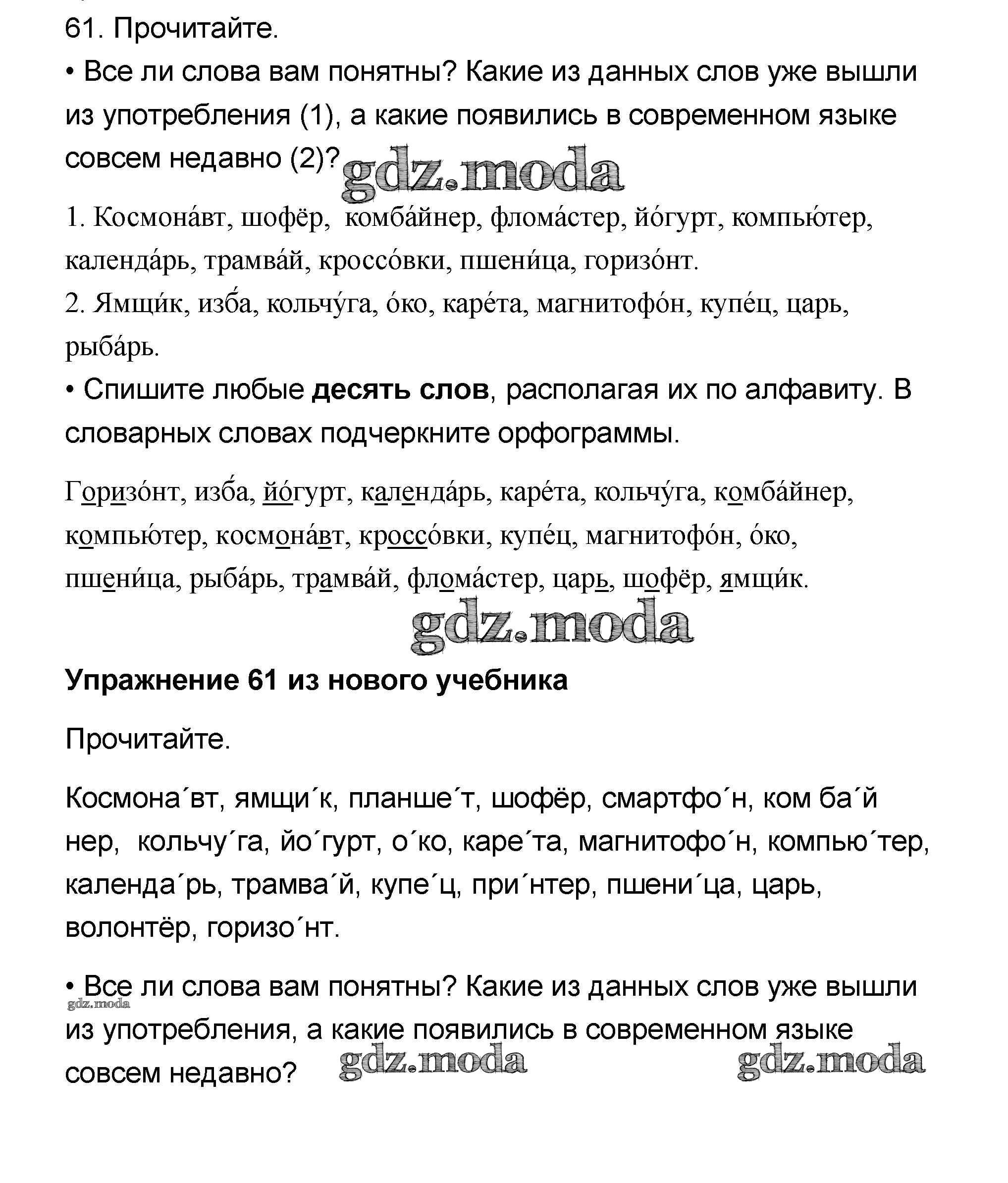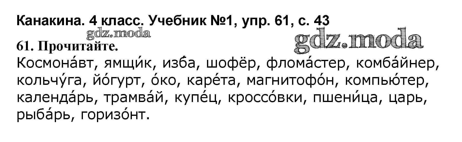 ОТВЕТ на задание № 61 Учебник по Русскому языку 4 класс Канакина Школа России