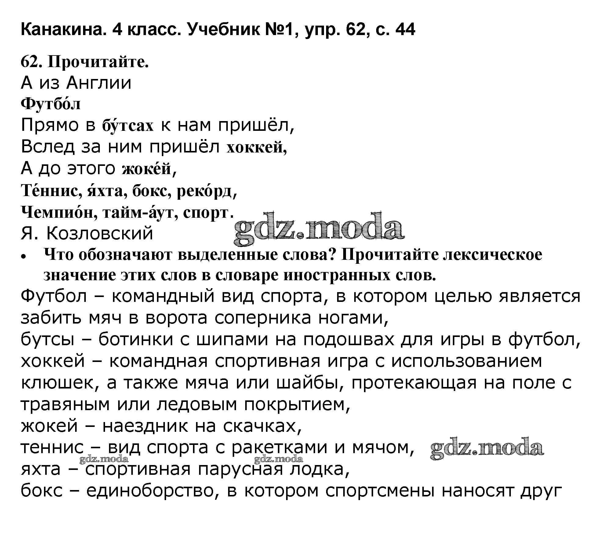 ОТВЕТ на задание № 62 Учебник по Русскому языку 4 класс Канакина Школа России