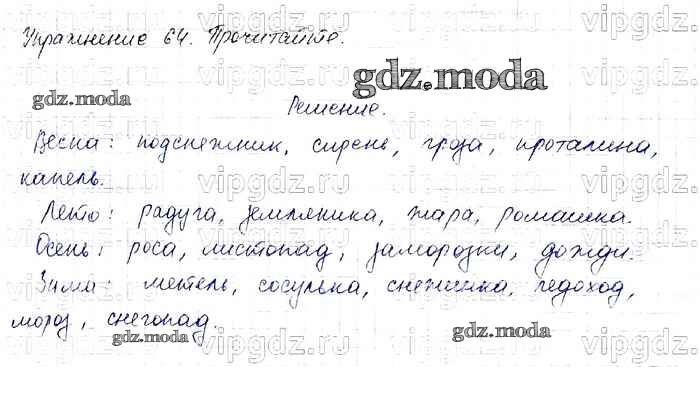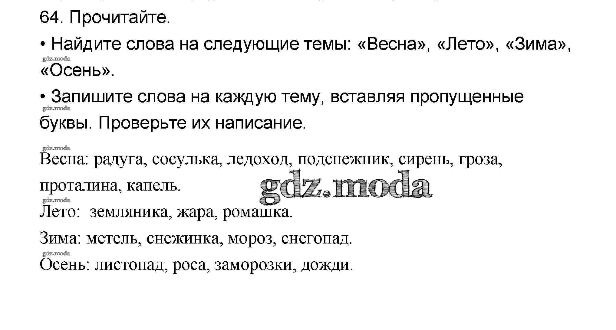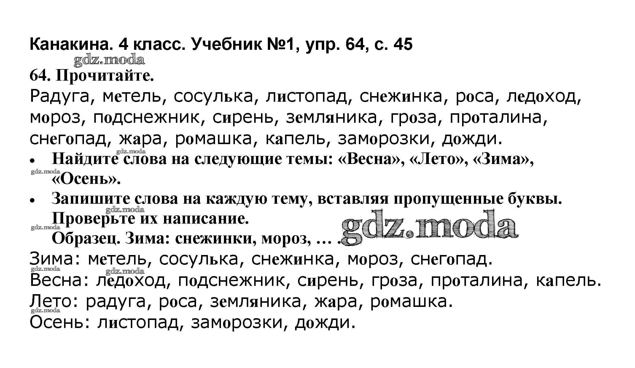 ОТВЕТ на задание № 64 Учебник по Русскому языку 4 класс Канакина Школа России