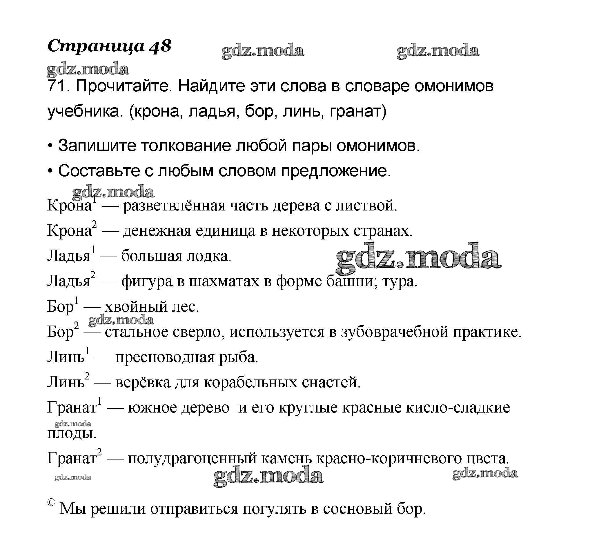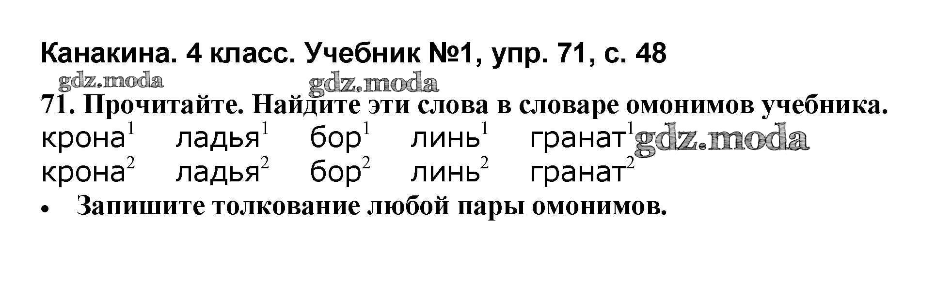 ОТВЕТ на задание № 71 Учебник по Русскому языку 4 класс Канакина Школа России