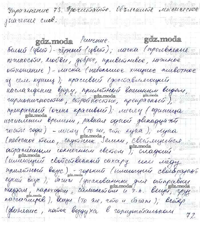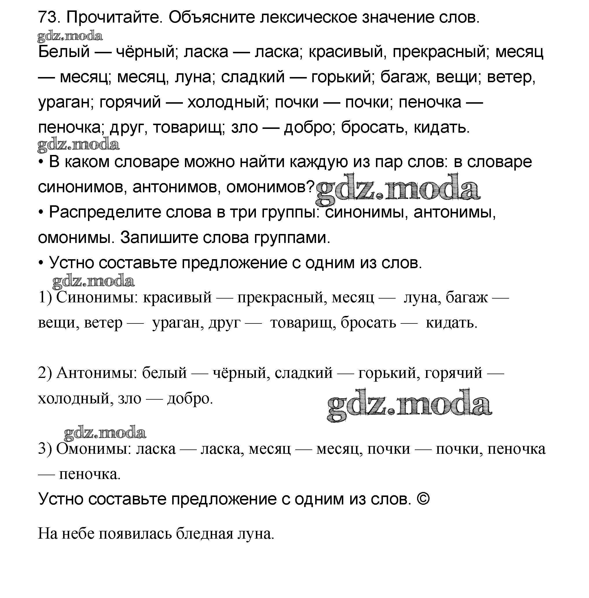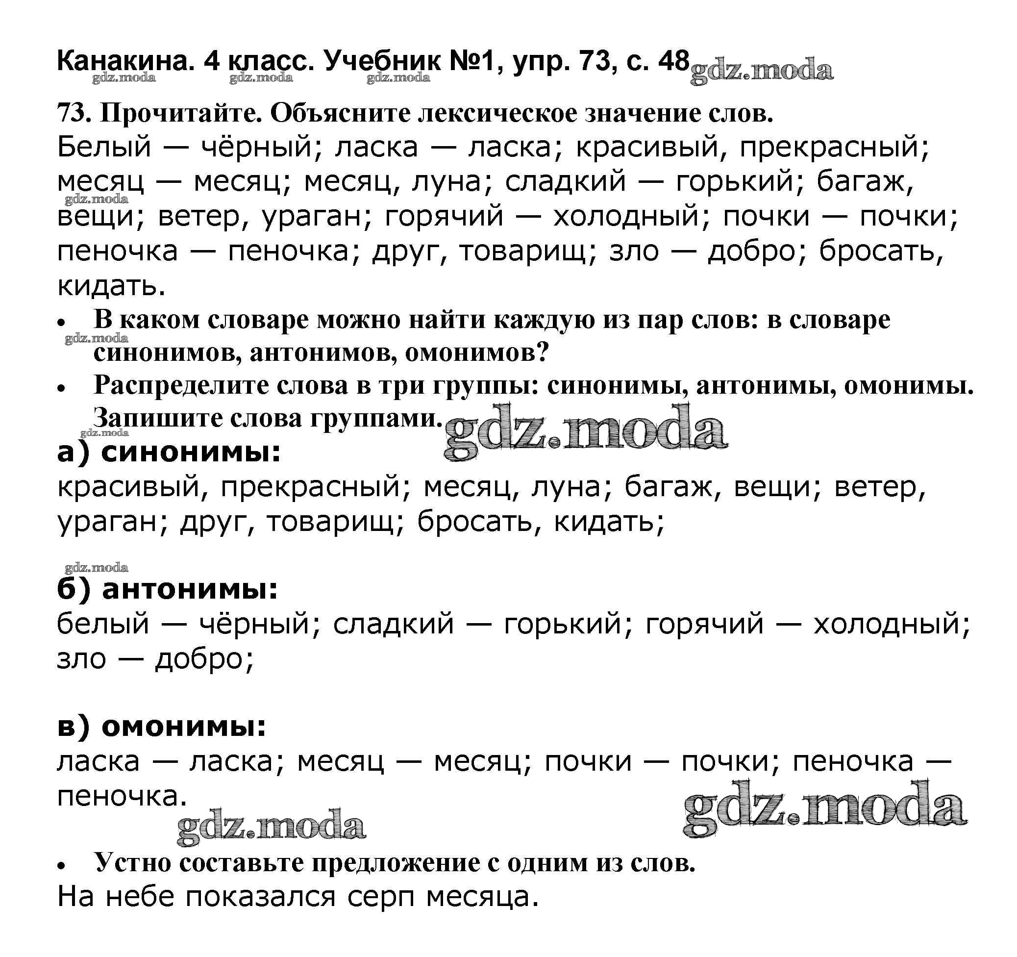 ОТВЕТ на задание № 73 Учебник по Русскому языку 4 класс Канакина Школа России