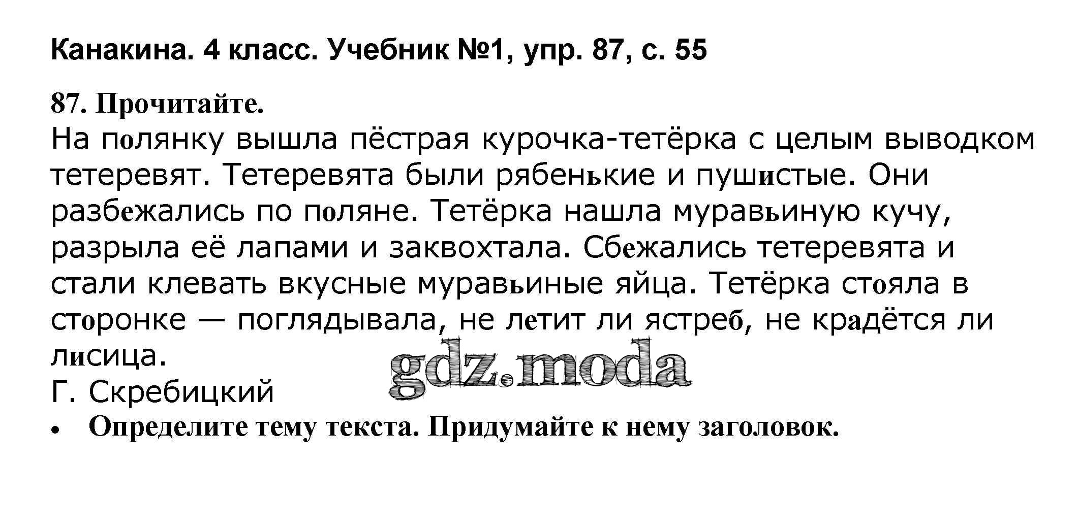 ОТВЕТ на задание № 87 Учебник по Русскому языку 4 класс Канакина Школа России