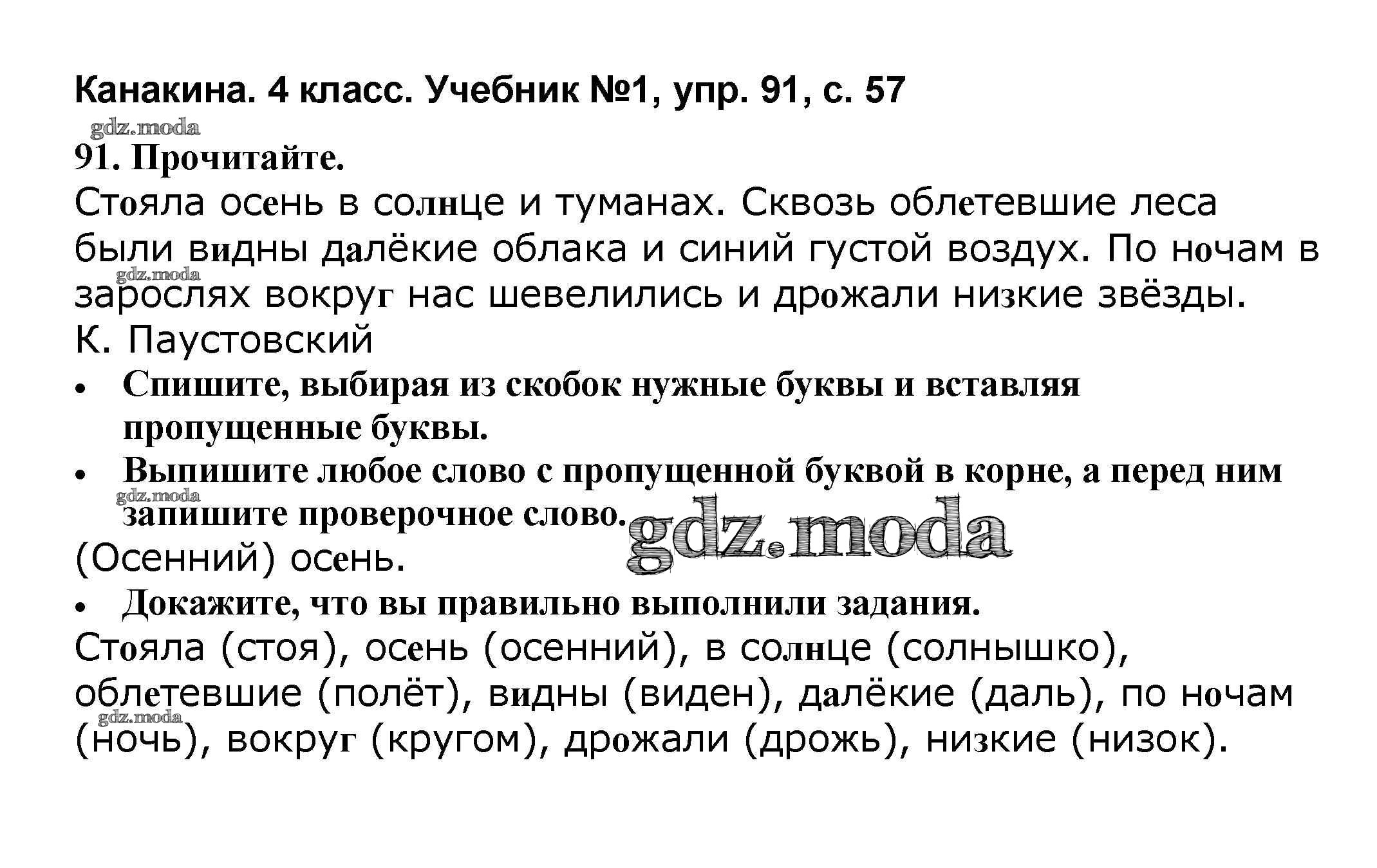 ОТВЕТ на задание № 91 Учебник по Русскому языку 4 класс Канакина Школа России