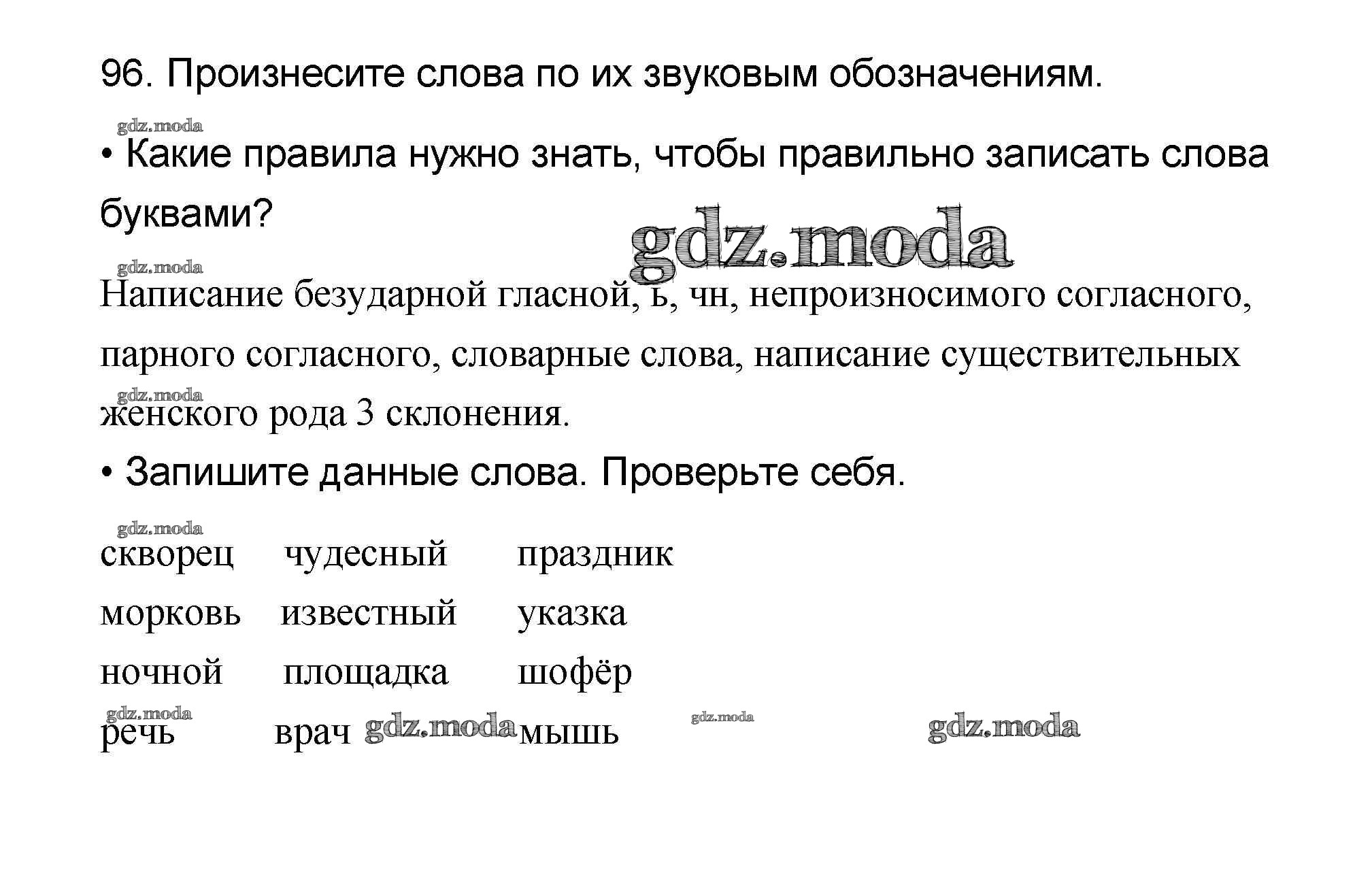 ОТВЕТ на задание № 96 Учебник по Русскому языку 4 класс Канакина Школа России