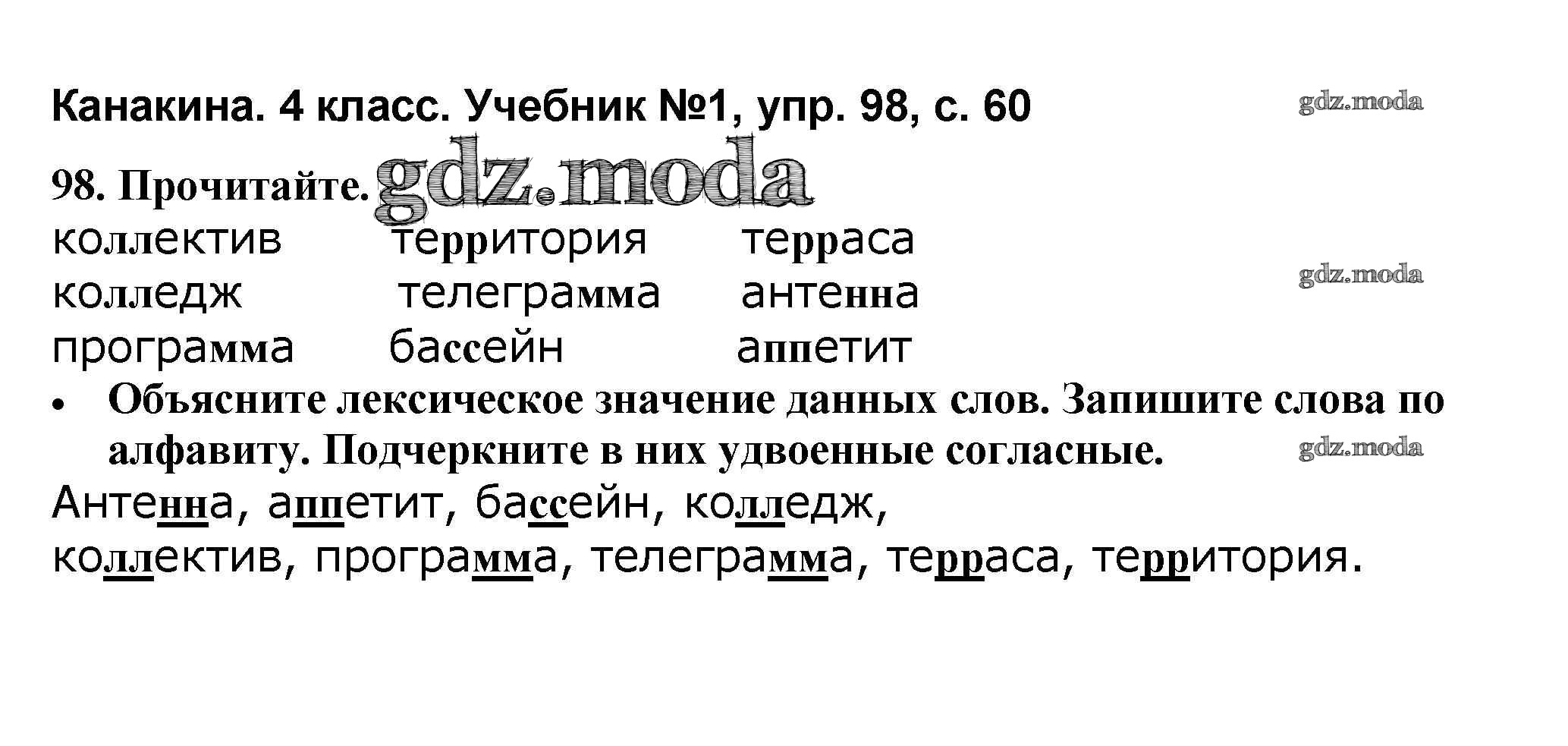ОТВЕТ на задание № 98 Учебник по Русскому языку 4 класс Канакина Школа России