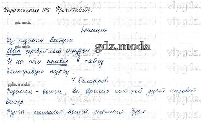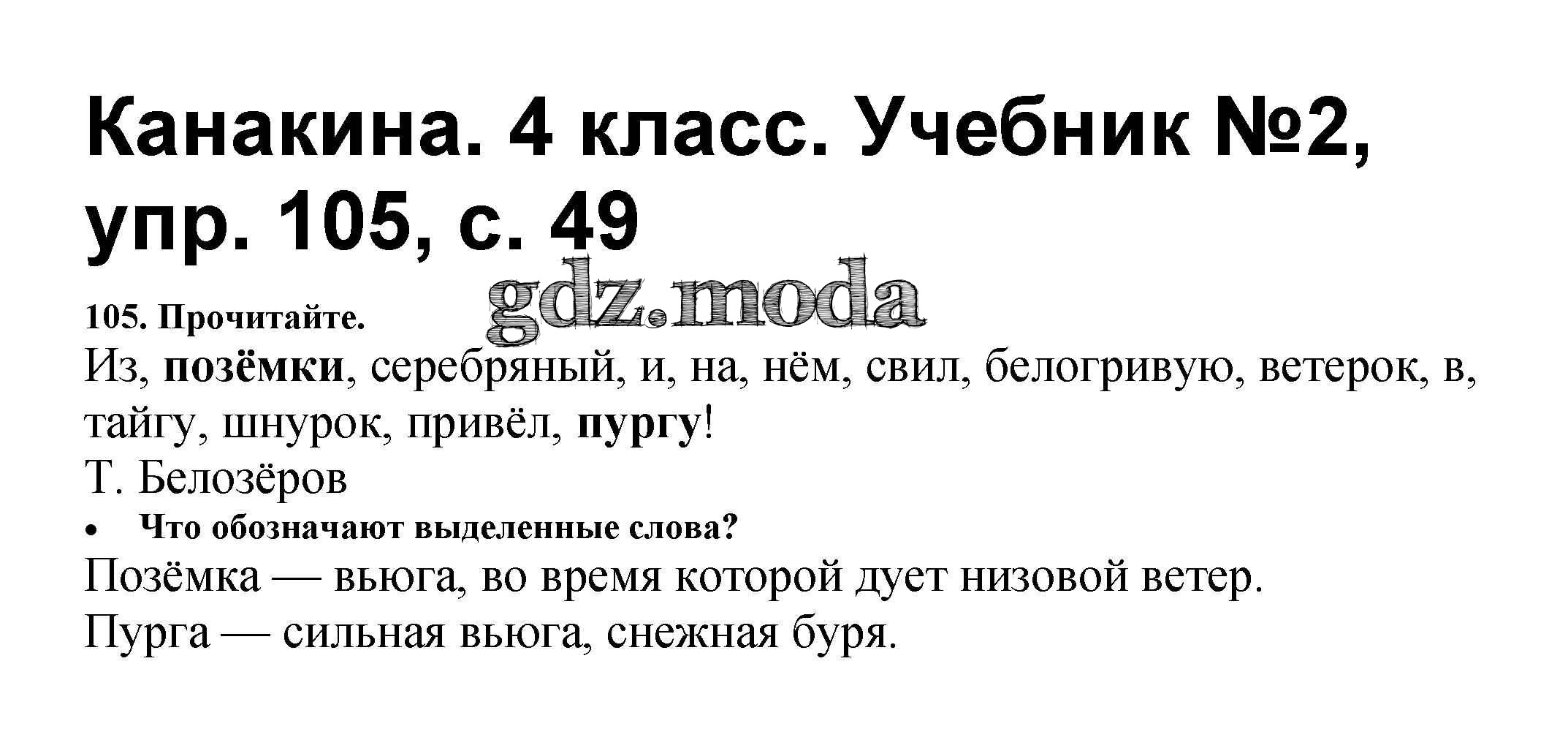 ОТВЕТ на задание № 105 Учебник по Русскому языку 4 класс Канакина Школа России