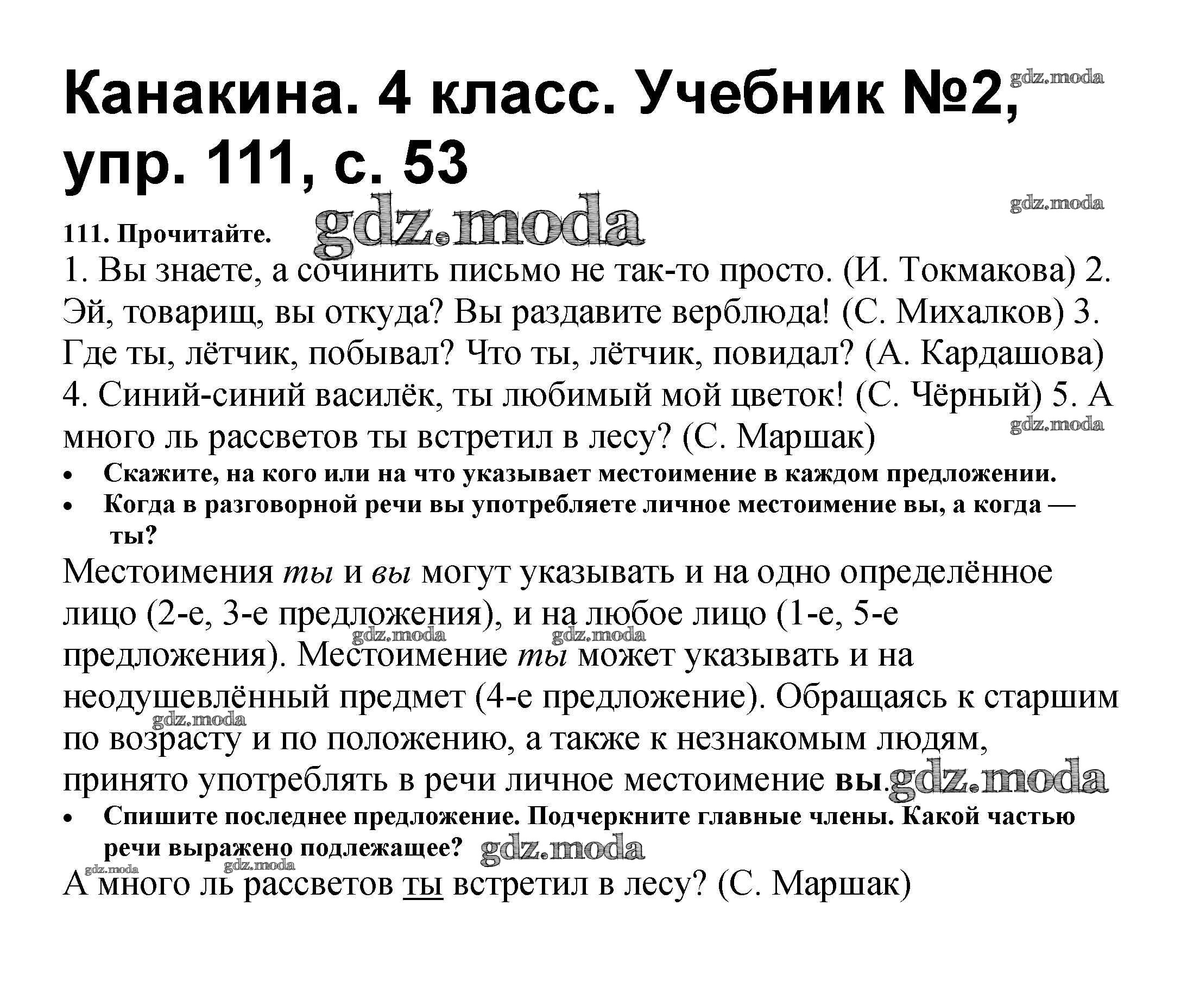 ОТВЕТ на задание № 111 Учебник по Русскому языку 4 класс Канакина Школа России