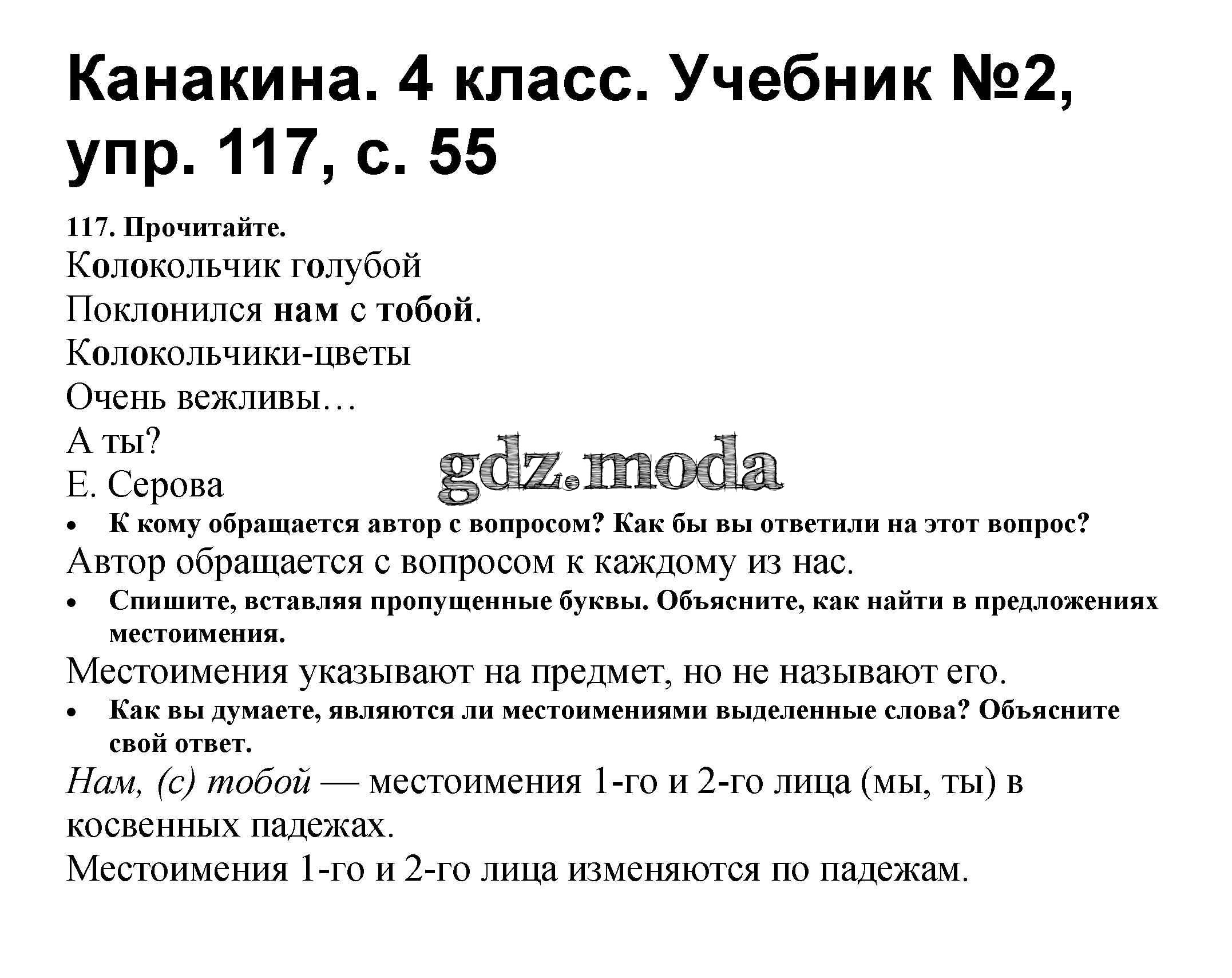 ОТВЕТ на задание № 117 Учебник по Русскому языку 4 класс Канакина Школа России