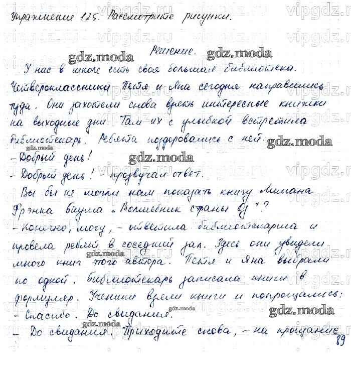 ОТВЕТ на задание № 125 Учебник по Русскому языку 4 класс Канакина Школа России