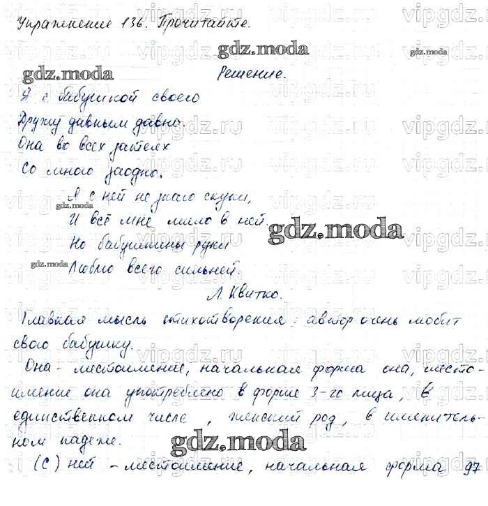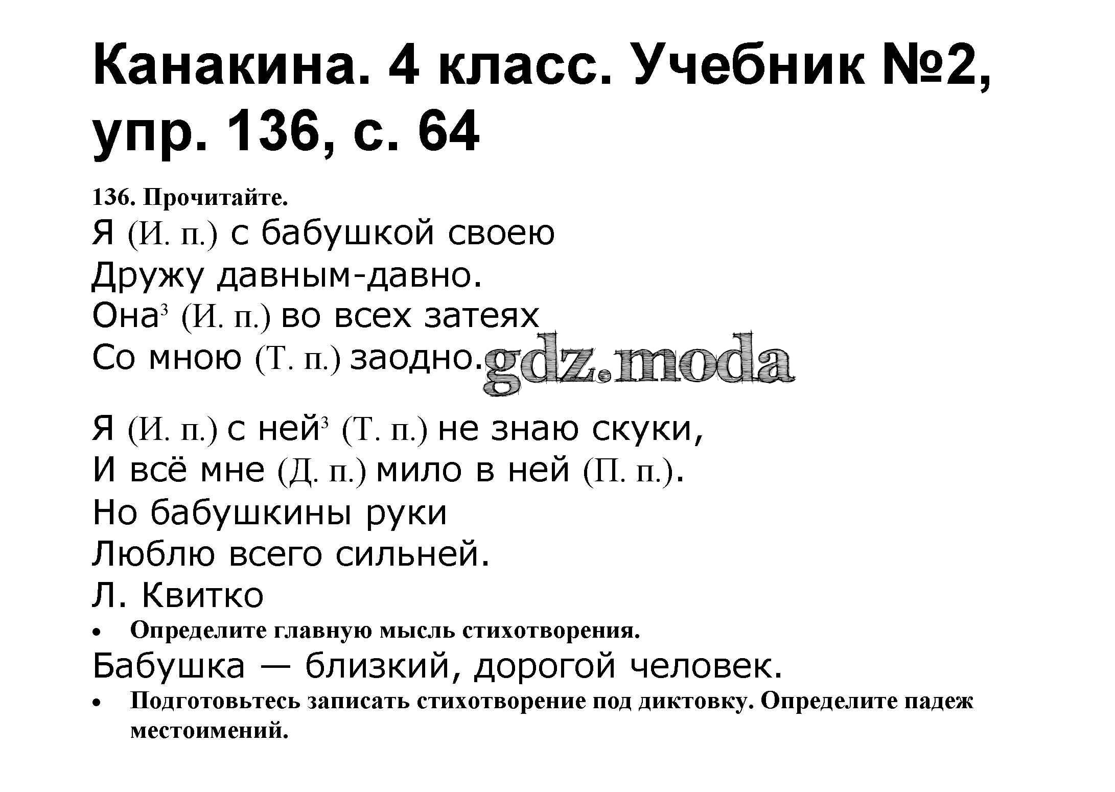 ОТВЕТ на задание № 136 Учебник по Русскому языку 4 класс Канакина Школа России