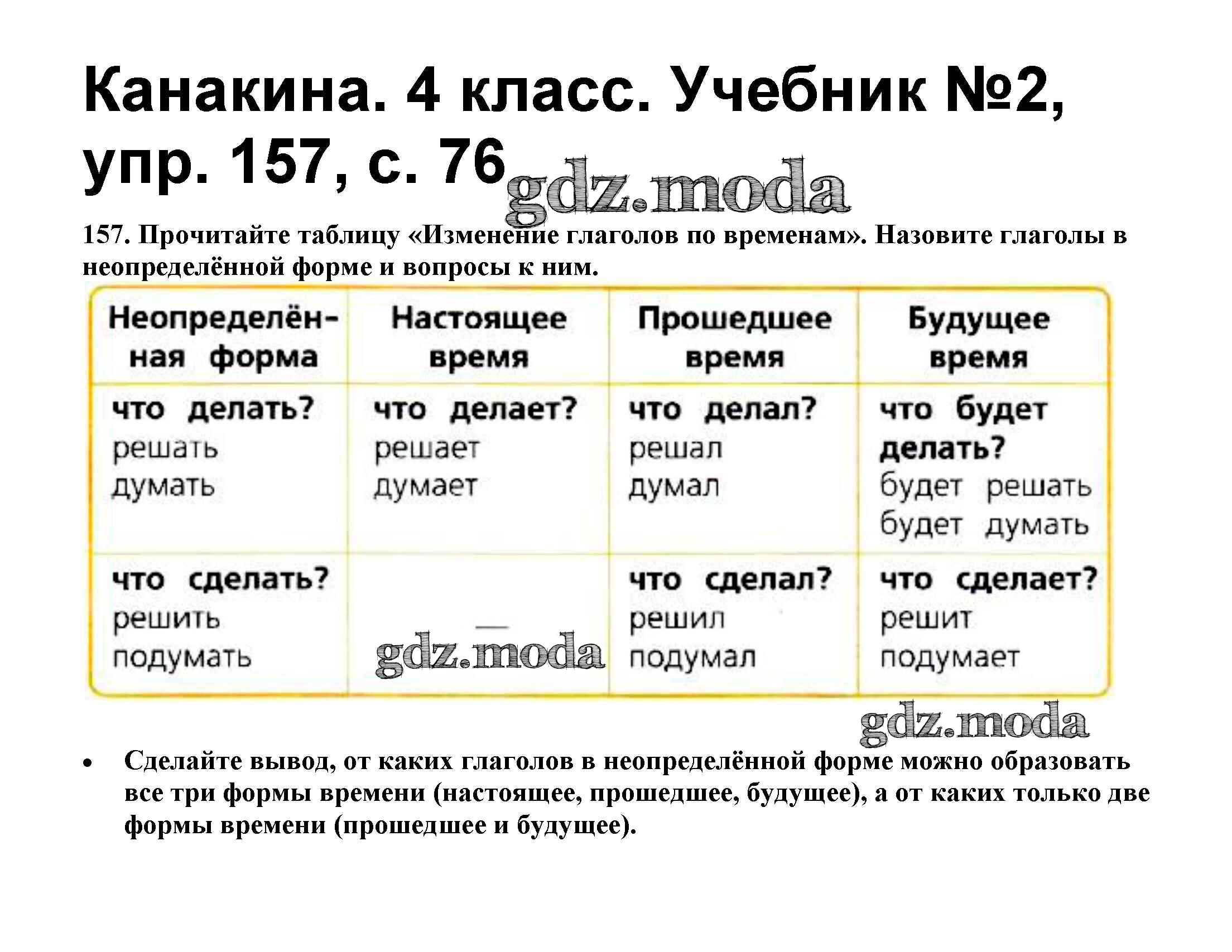 ОТВЕТ на задание № 157 Учебник по Русскому языку 4 класс Канакина Школа России