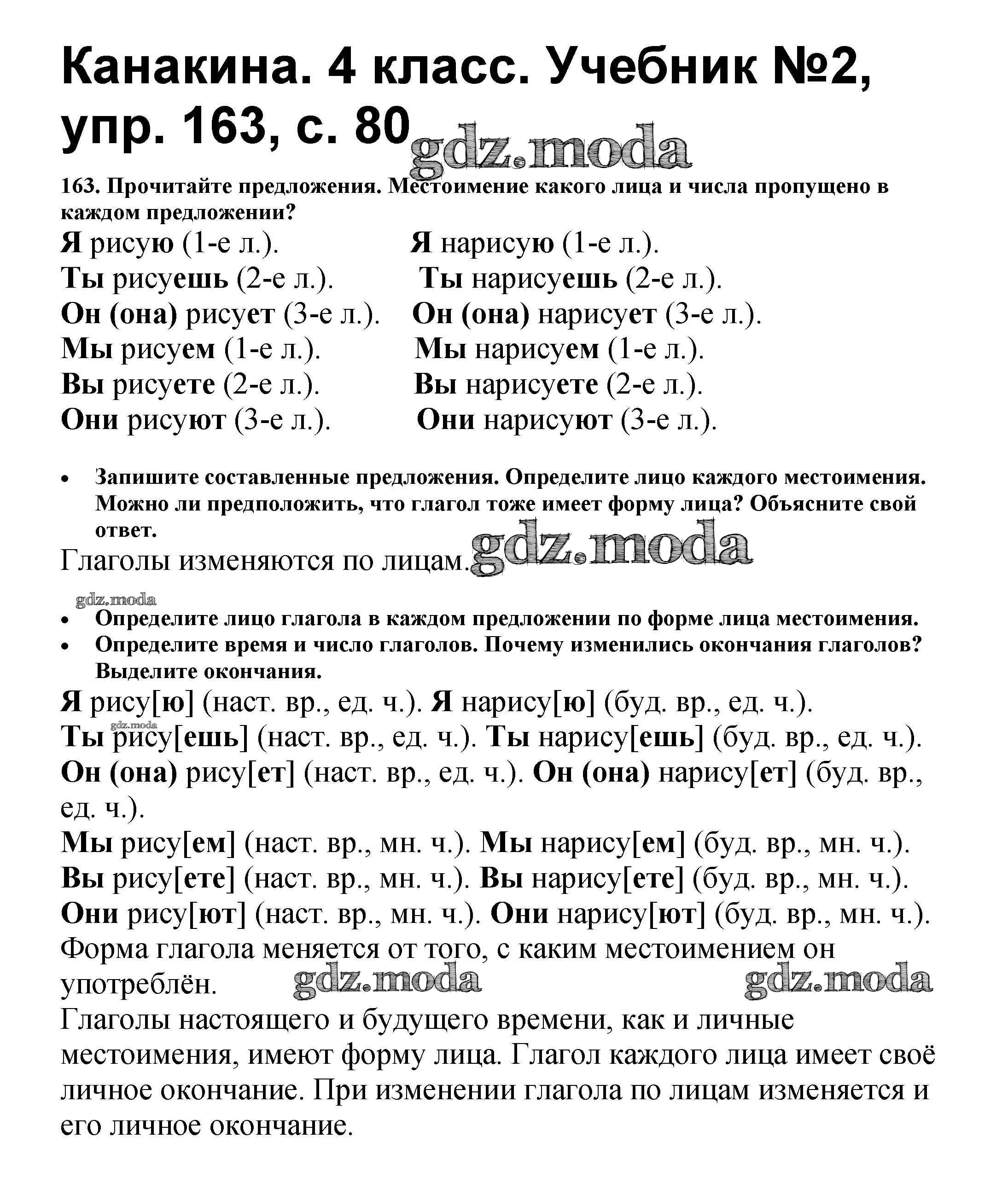 ОТВЕТ на задание № 163 Учебник по Русскому языку 4 класс Канакина Школа России