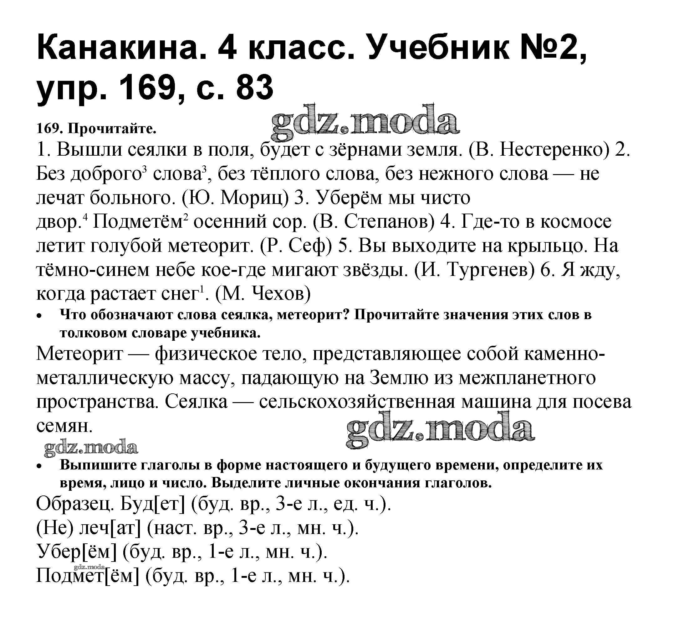 ОТВЕТ на задание № 169 Учебник по Русскому языку 4 класс Канакина Школа России