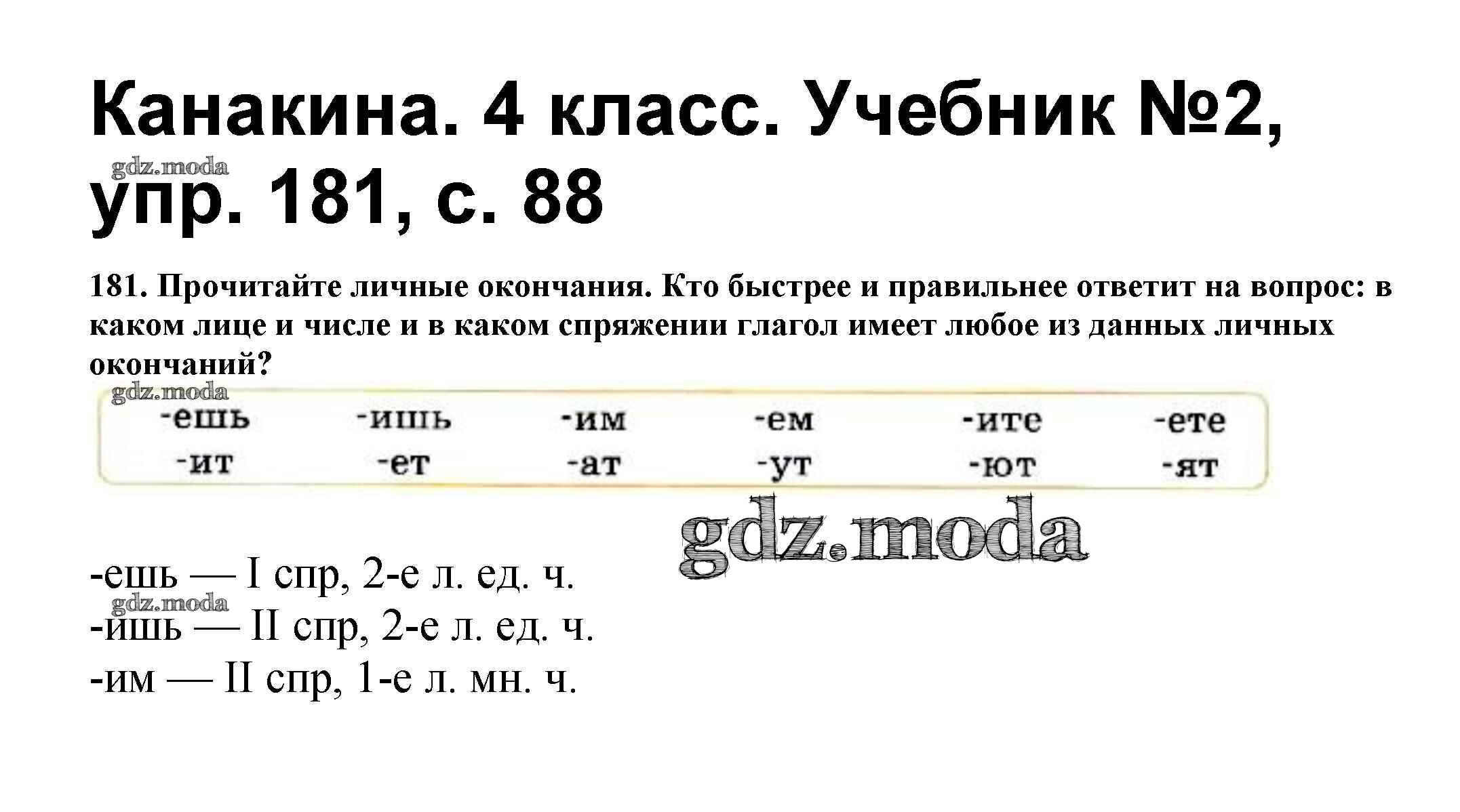 ОТВЕТ на задание № 181 Учебник по Русскому языку 4 класс Канакина Школа России