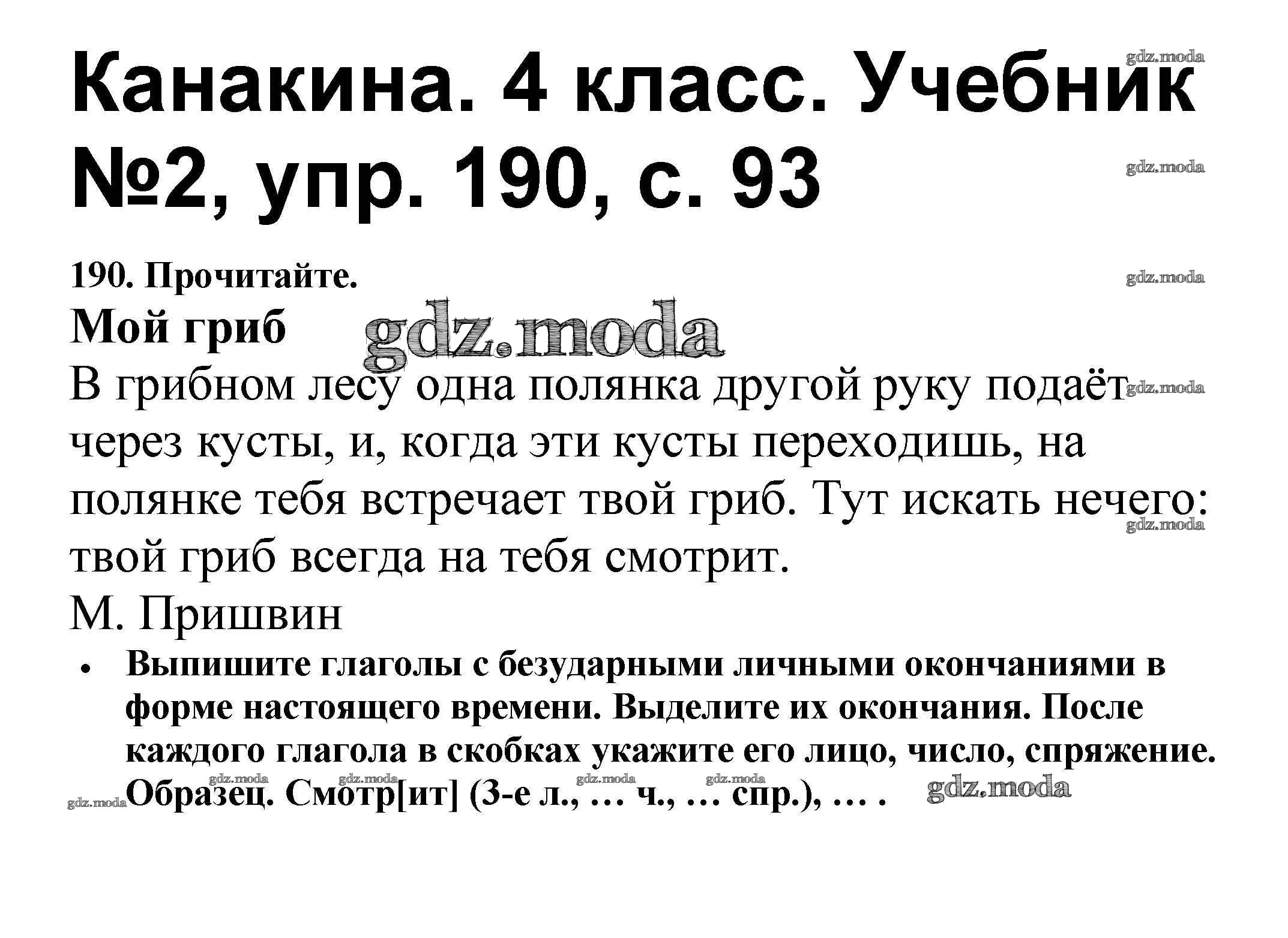ОТВЕТ на задание № 190 Учебник по Русскому языку 4 класс Канакина Школа России