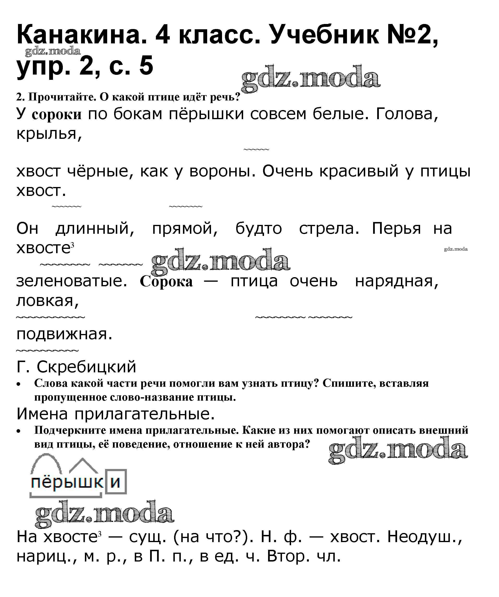 ОТВЕТ на задание № 2 Учебник по Русскому языку 4 класс Канакина Школа России