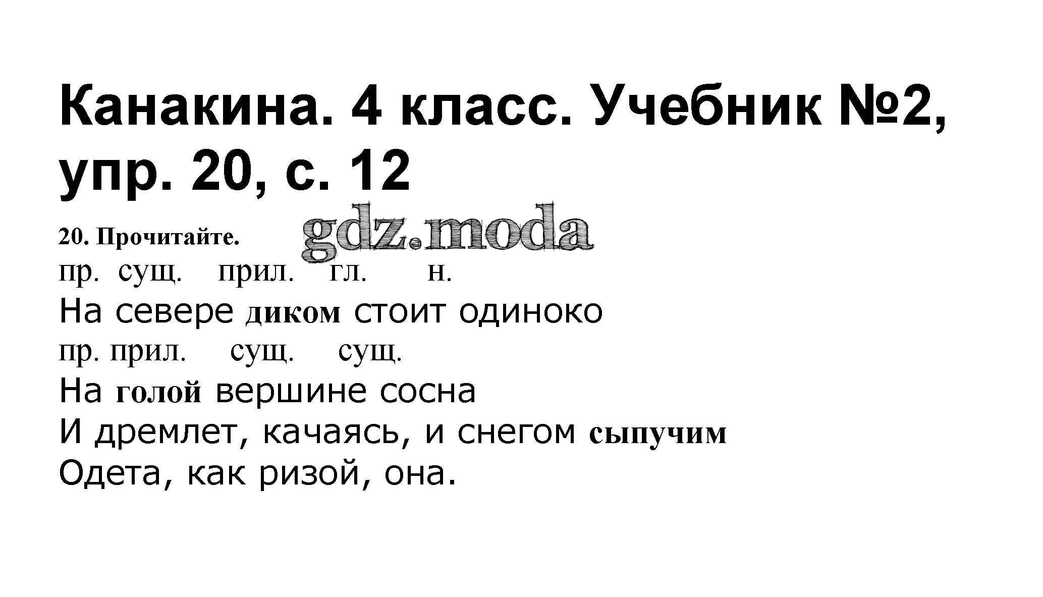 ОТВЕТ на задание № 20 Учебник по Русскому языку 4 класс Канакина Школа России