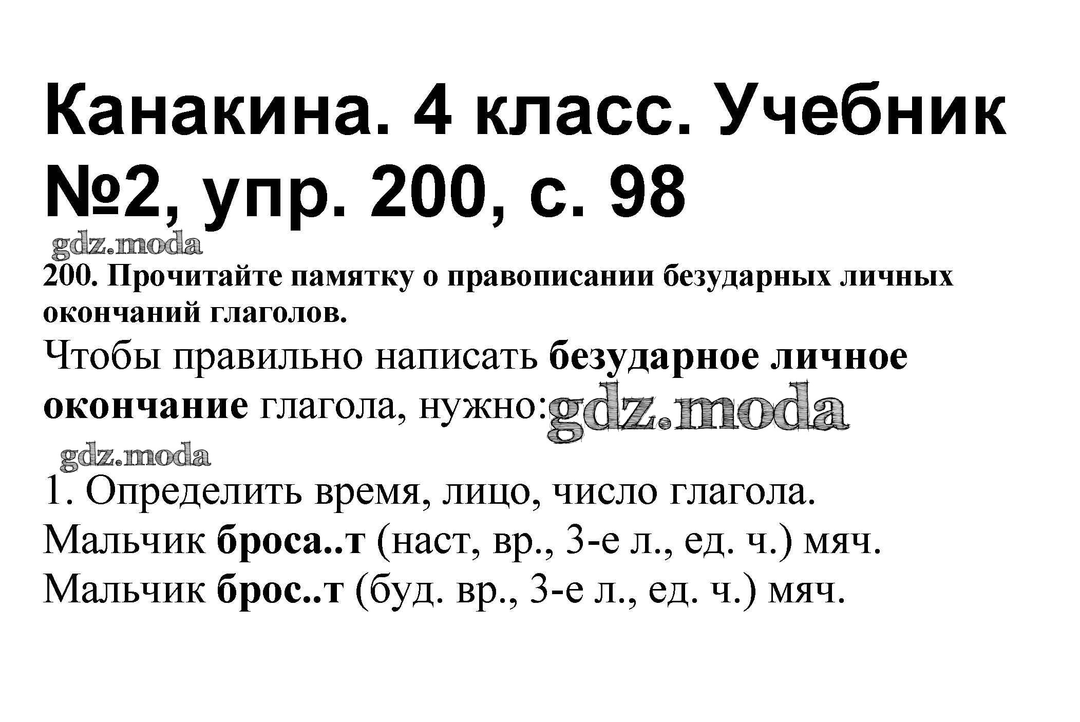 ОТВЕТ на задание № 200 Учебник по Русскому языку 4 класс Канакина Школа России