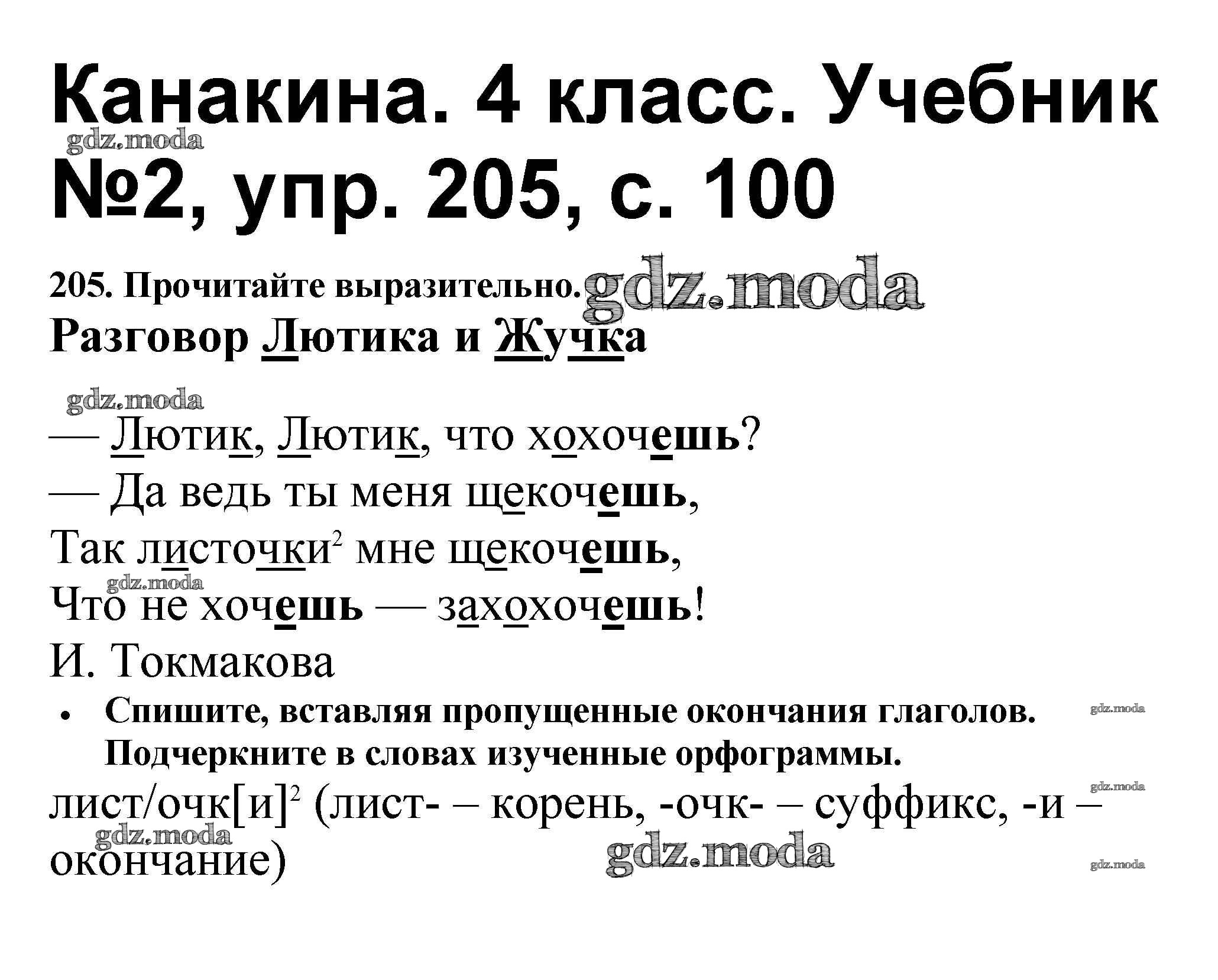ОТВЕТ на задание № 205 Учебник по Русскому языку 4 класс Канакина Школа России