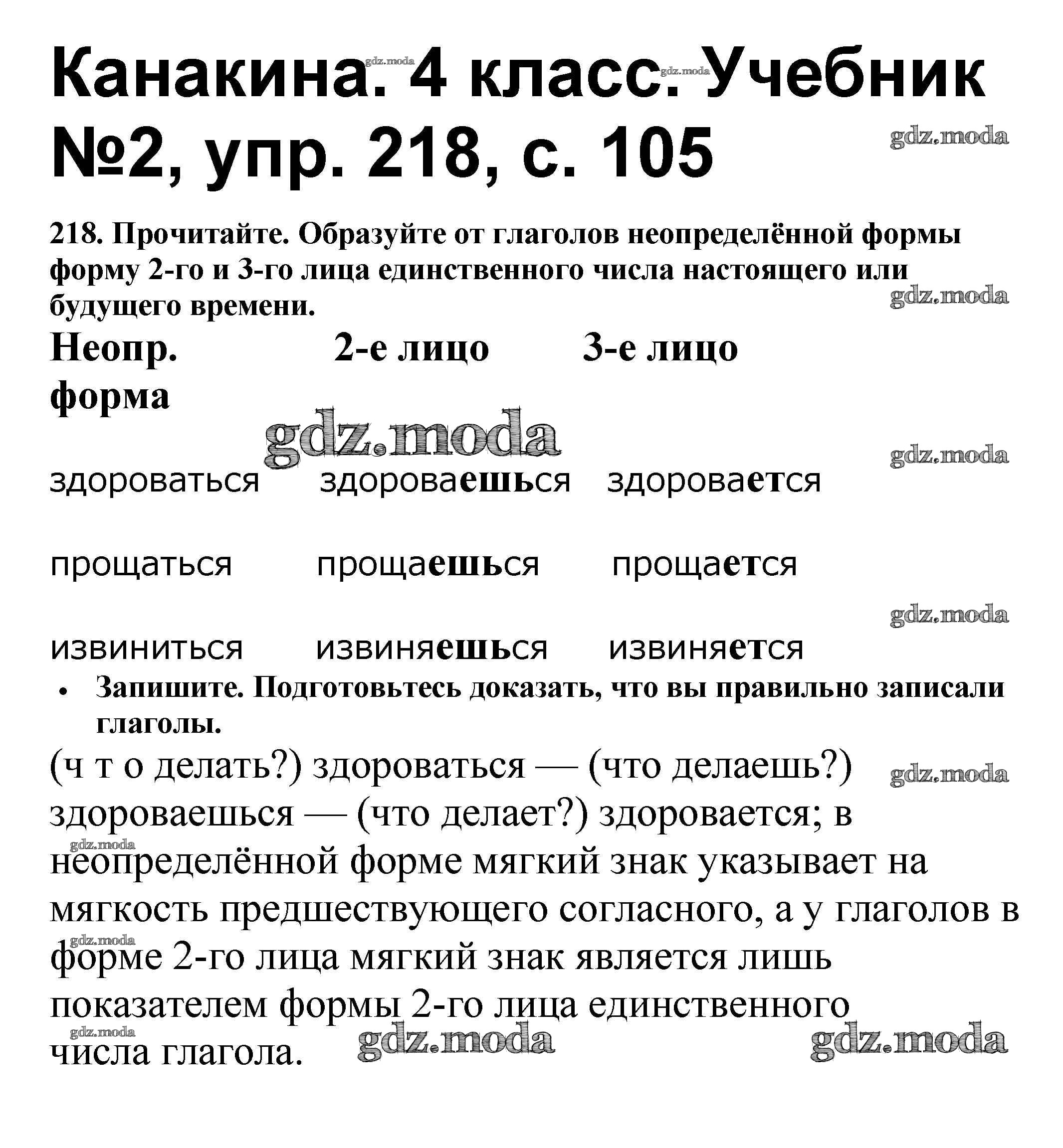 ОТВЕТ на задание № 218 Учебник по Русскому языку 4 класс Канакина Школа России