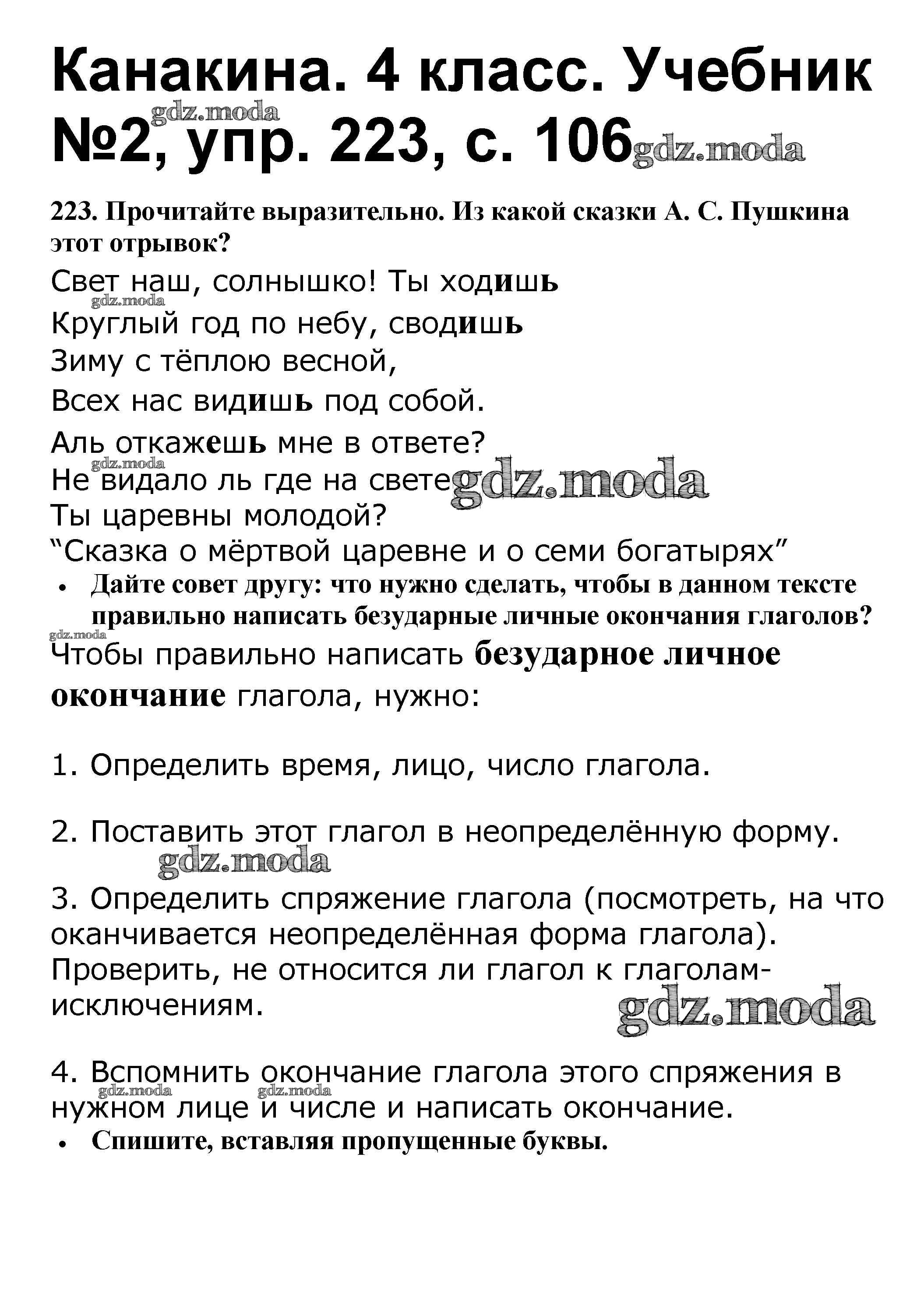 ОТВЕТ на задание № 223 Учебник по Русскому языку 4 класс Канакина Школа России