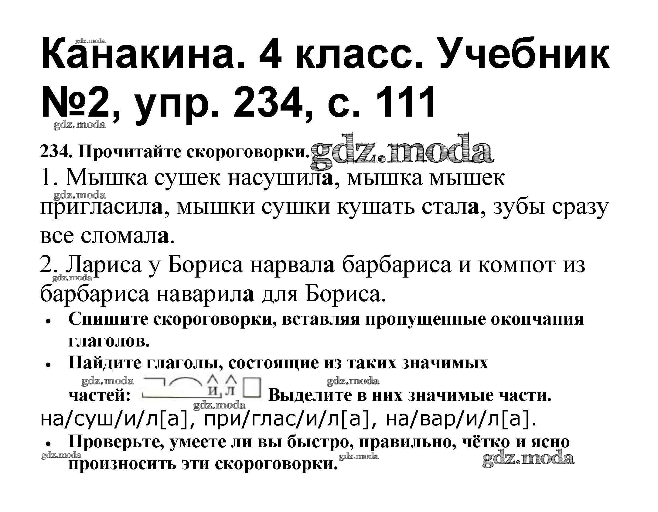 ОТВЕТ на задание № 234 Учебник по Русскому языку 4 класс Канакина Школа России
