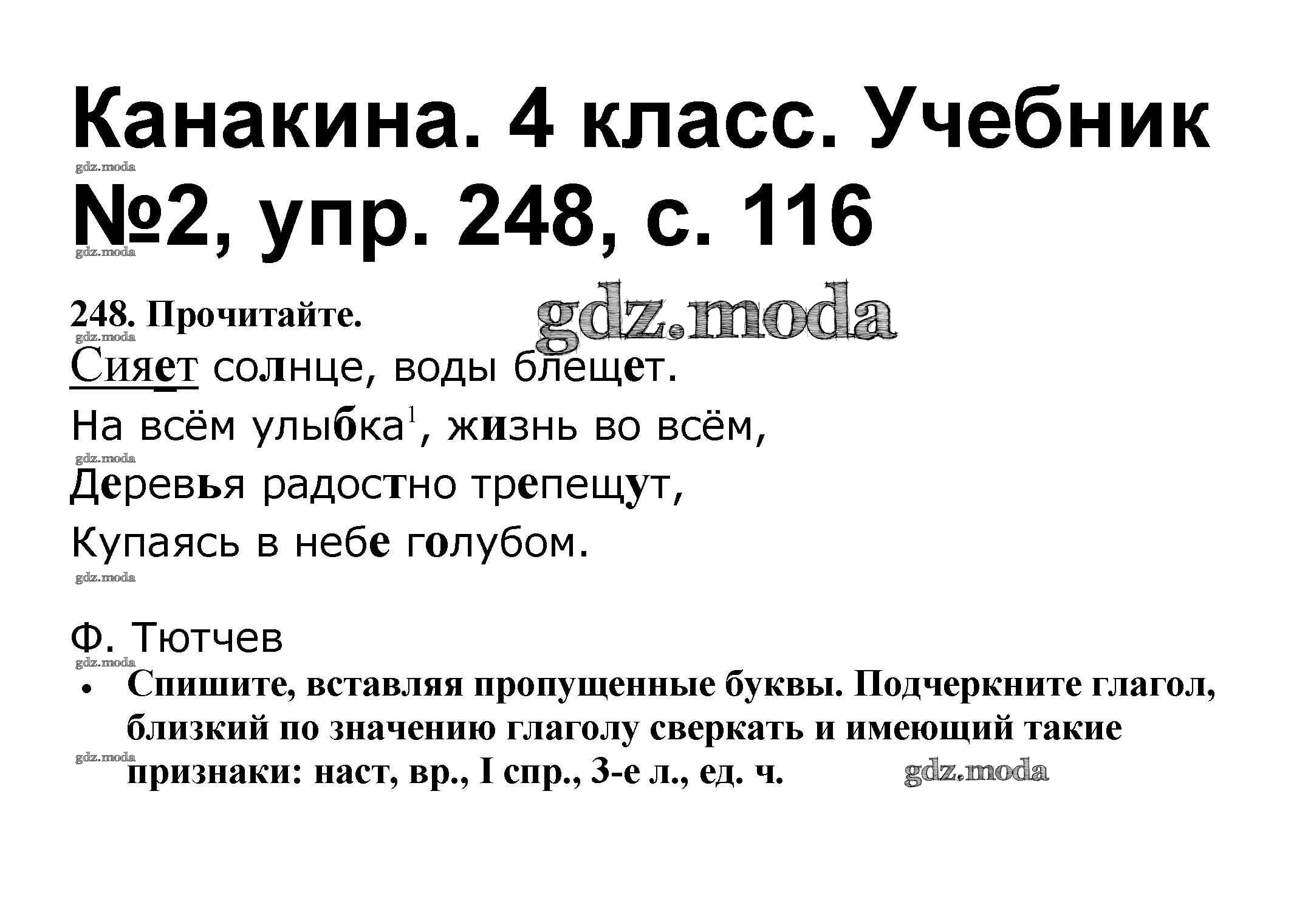 ОТВЕТ на задание № 248 Учебник по Русскому языку 4 класс Канакина Школа России