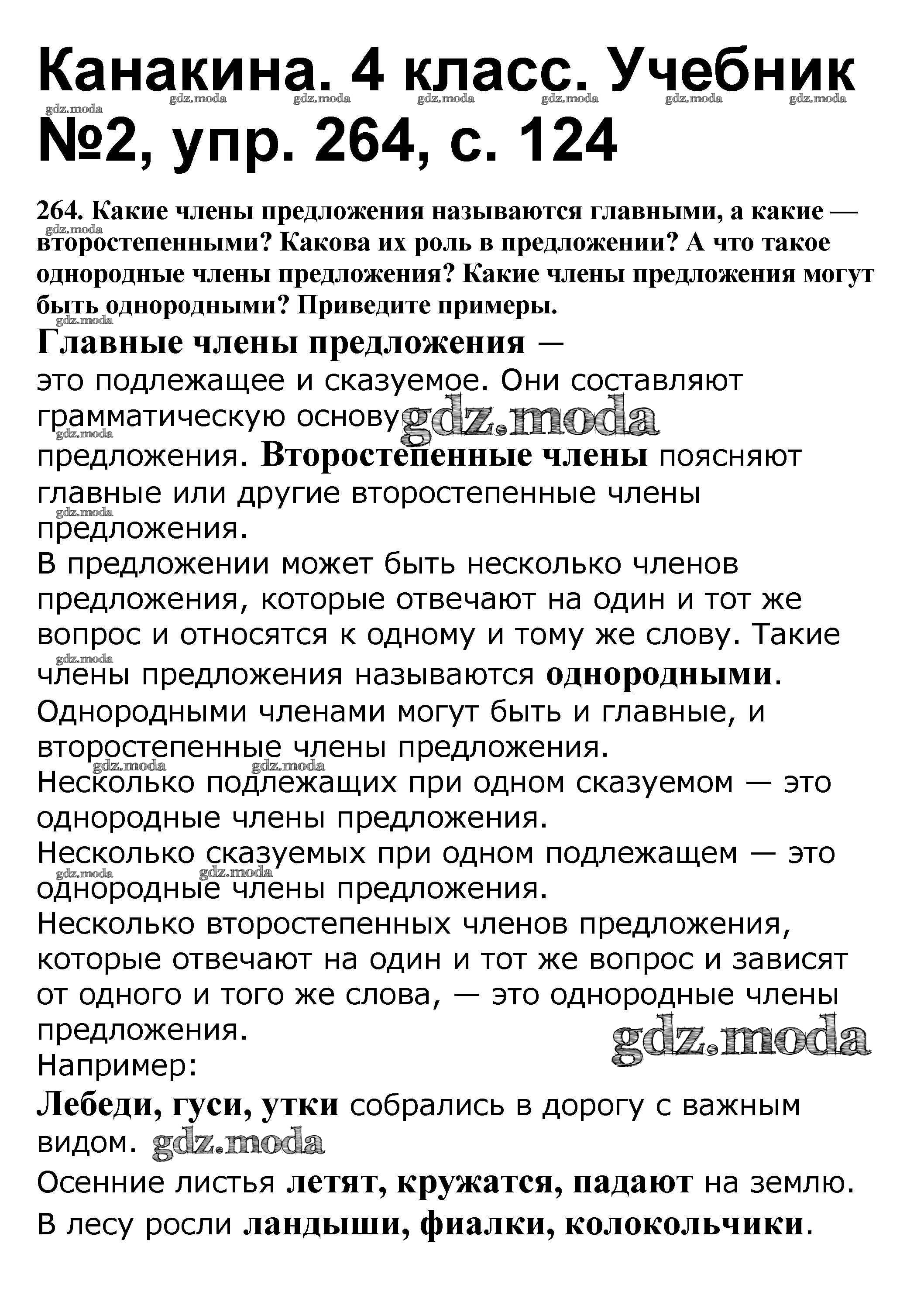 ОТВЕТ на задание № 264 Учебник по Русскому языку 4 класс Канакина Школа России