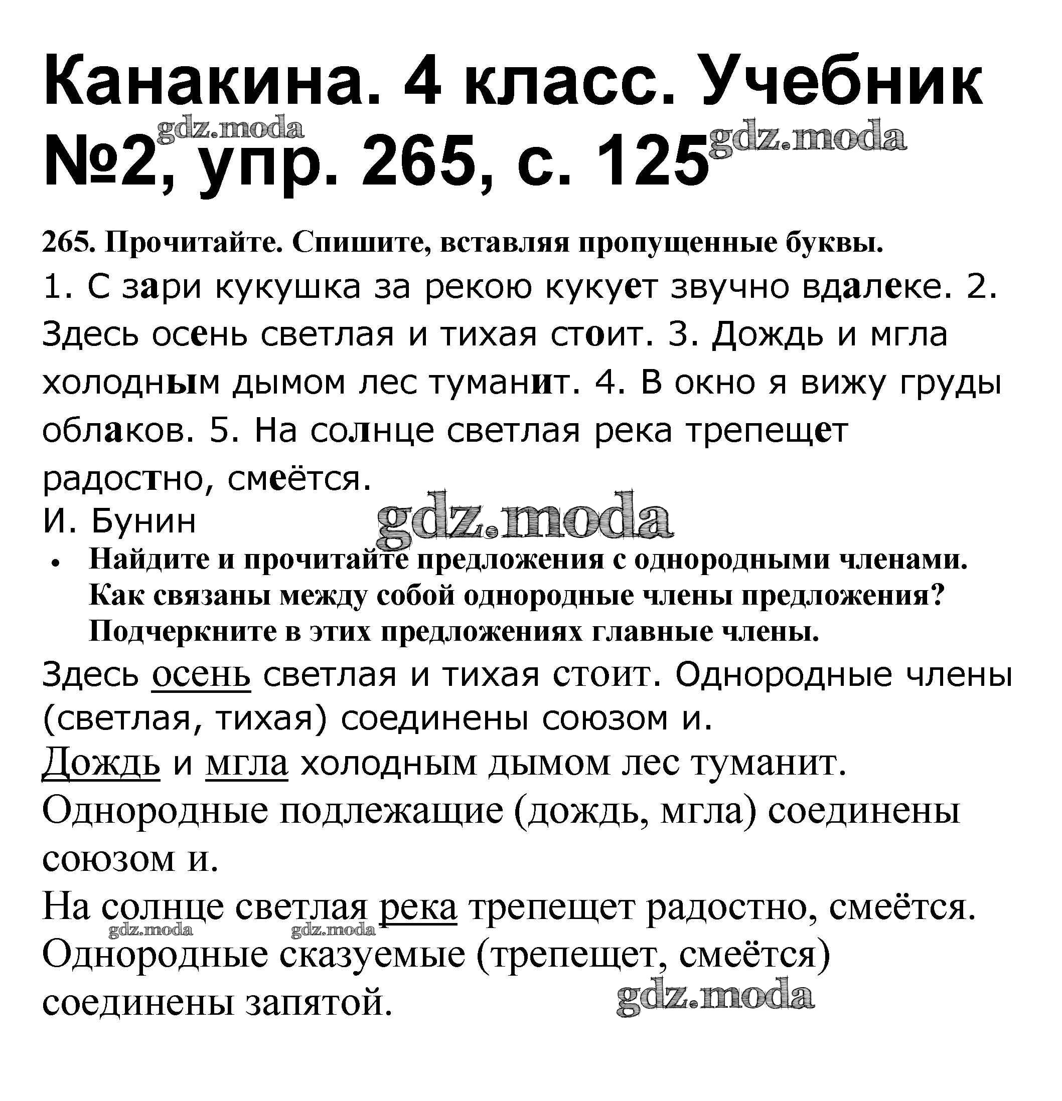 ОТВЕТ на задание № 265 Учебник по Русскому языку 4 класс Канакина Школа России