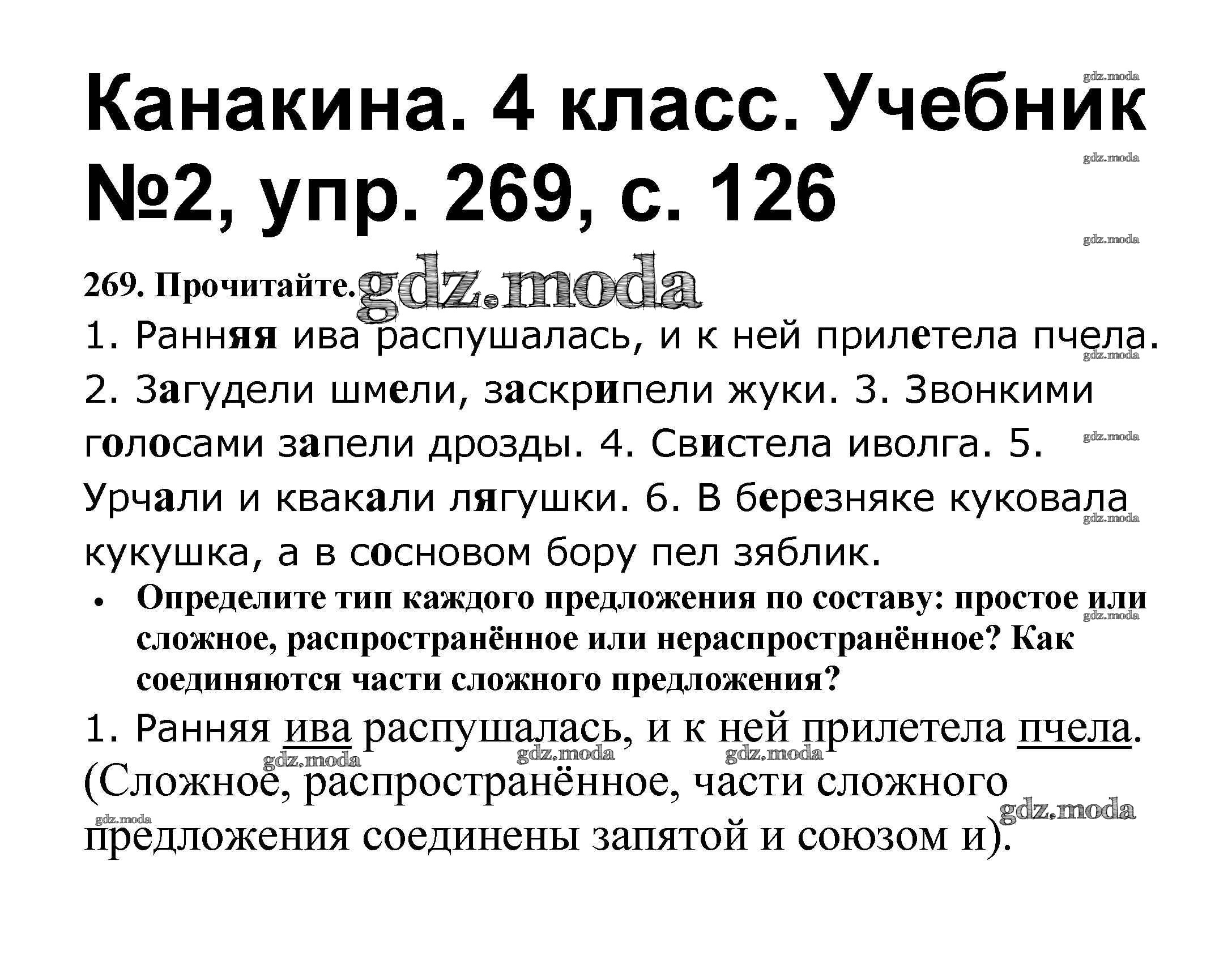 ОТВЕТ на задание № 269 Учебник по Русскому языку 4 класс Канакина Школа России