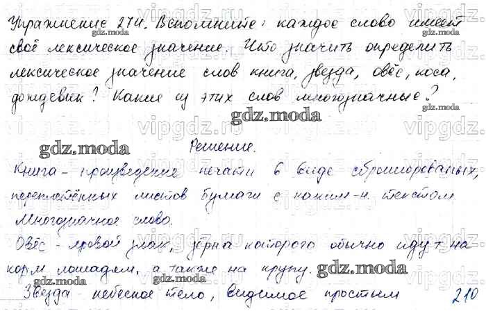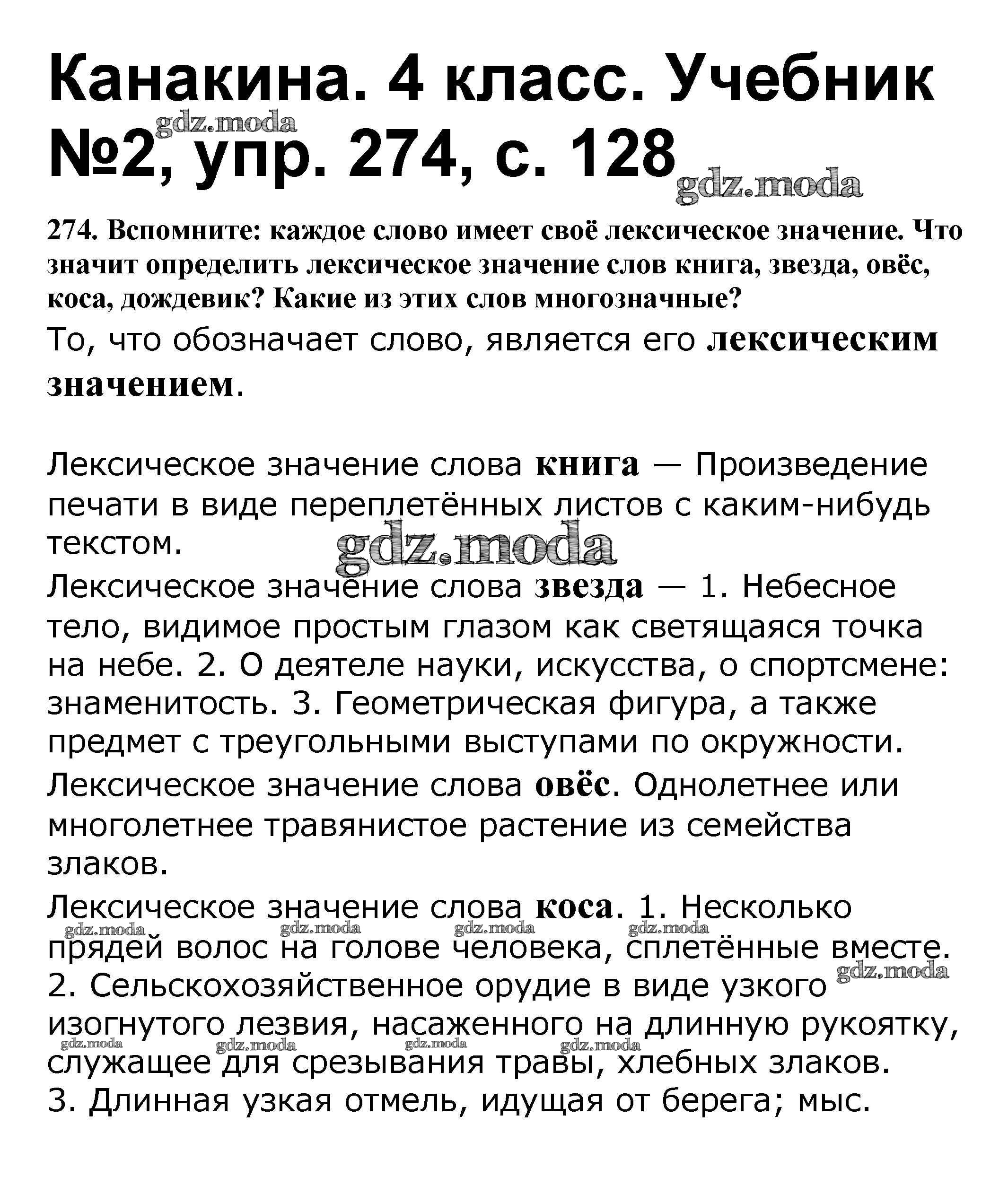ОТВЕТ на задание № 274 Учебник по Русскому языку 4 класс Канакина Школа России